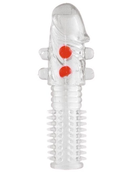 Гелевая прозрачная насадка с шариками и шипами — 14 см.