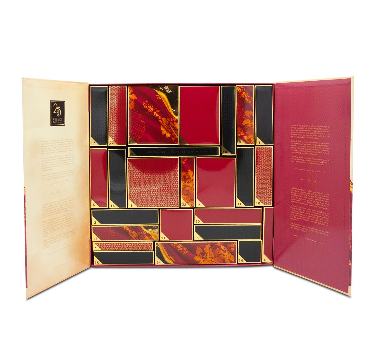 Откройте для себя уникальный адвент Calendar of Desires, созданный для истинных ценителей люкса и заботы. Внутри вас ждет коллекция лучших продуктов Shunga, объединяющая в себе качество, инновации и неповторимые ароматы. Что внутри? • 8 полноценных продуктов – подборка самых популярных средств бренда. • 12 средств для массажа и любви travel-формата. • 4 игривых аксессуара – добавьте легкости и веселья в повседневность. • 1 массажер – для ухода и расслабления. Идеальный выбор для тех, кто любит удивляться и радовать себя каждый день.