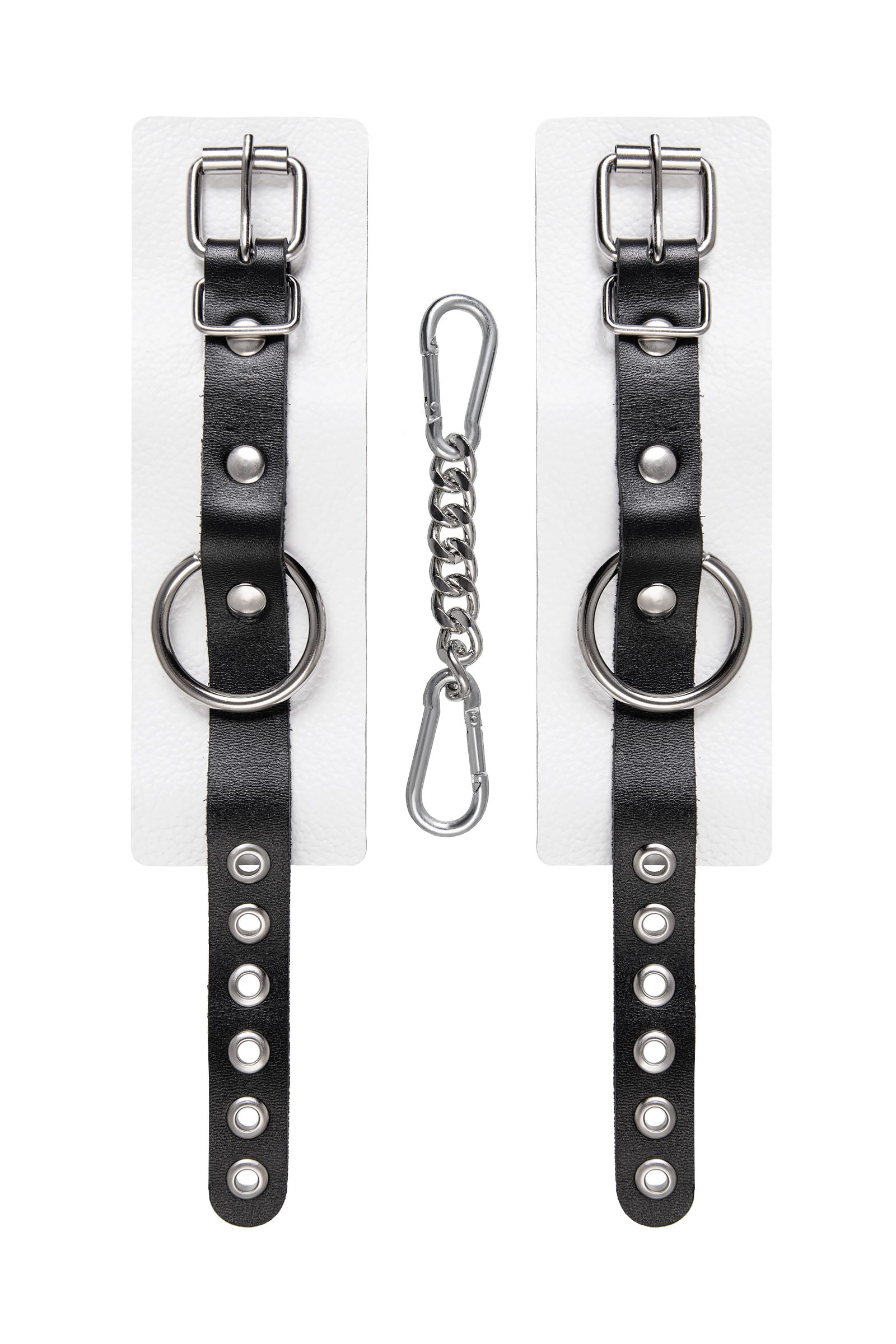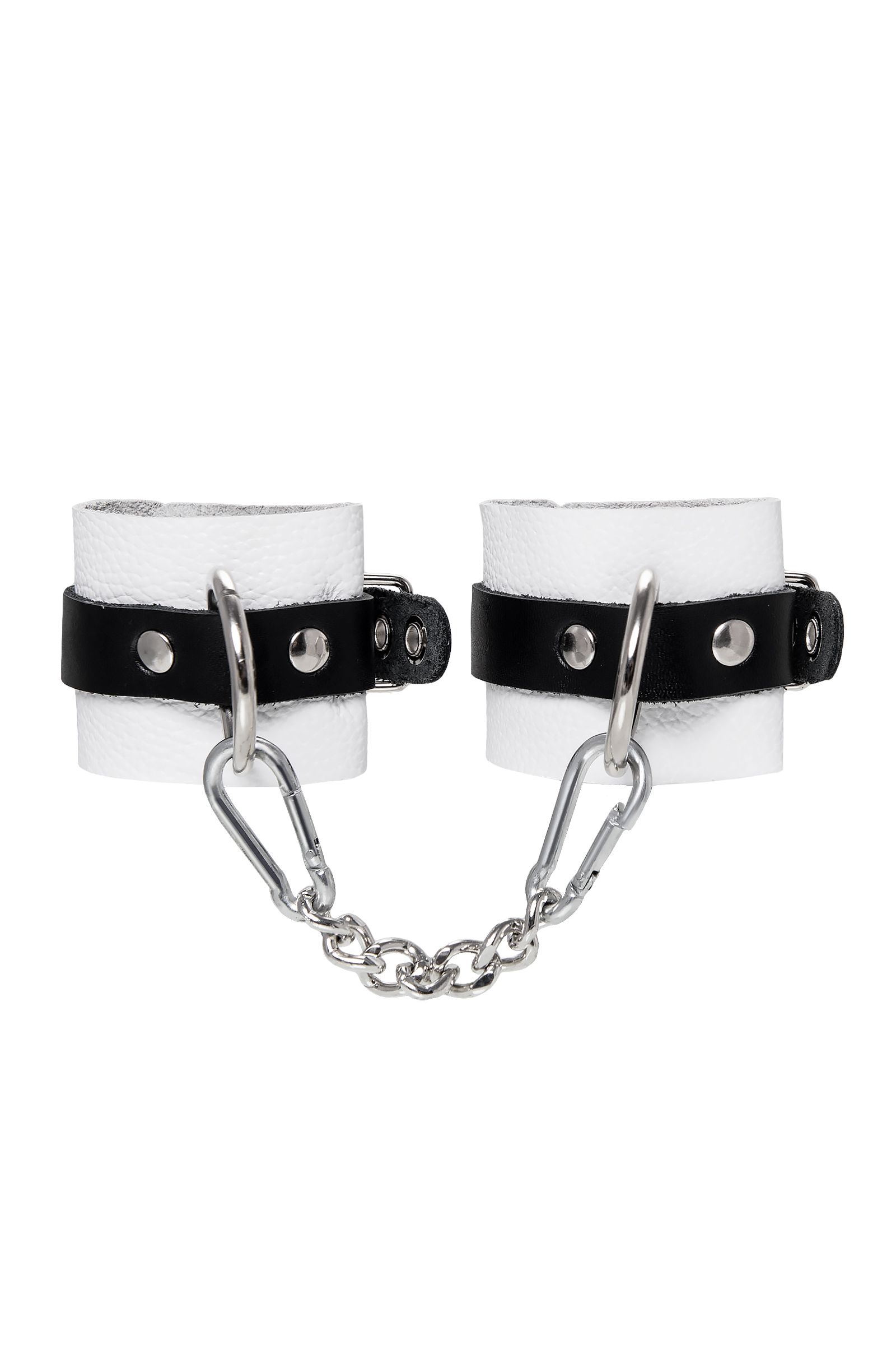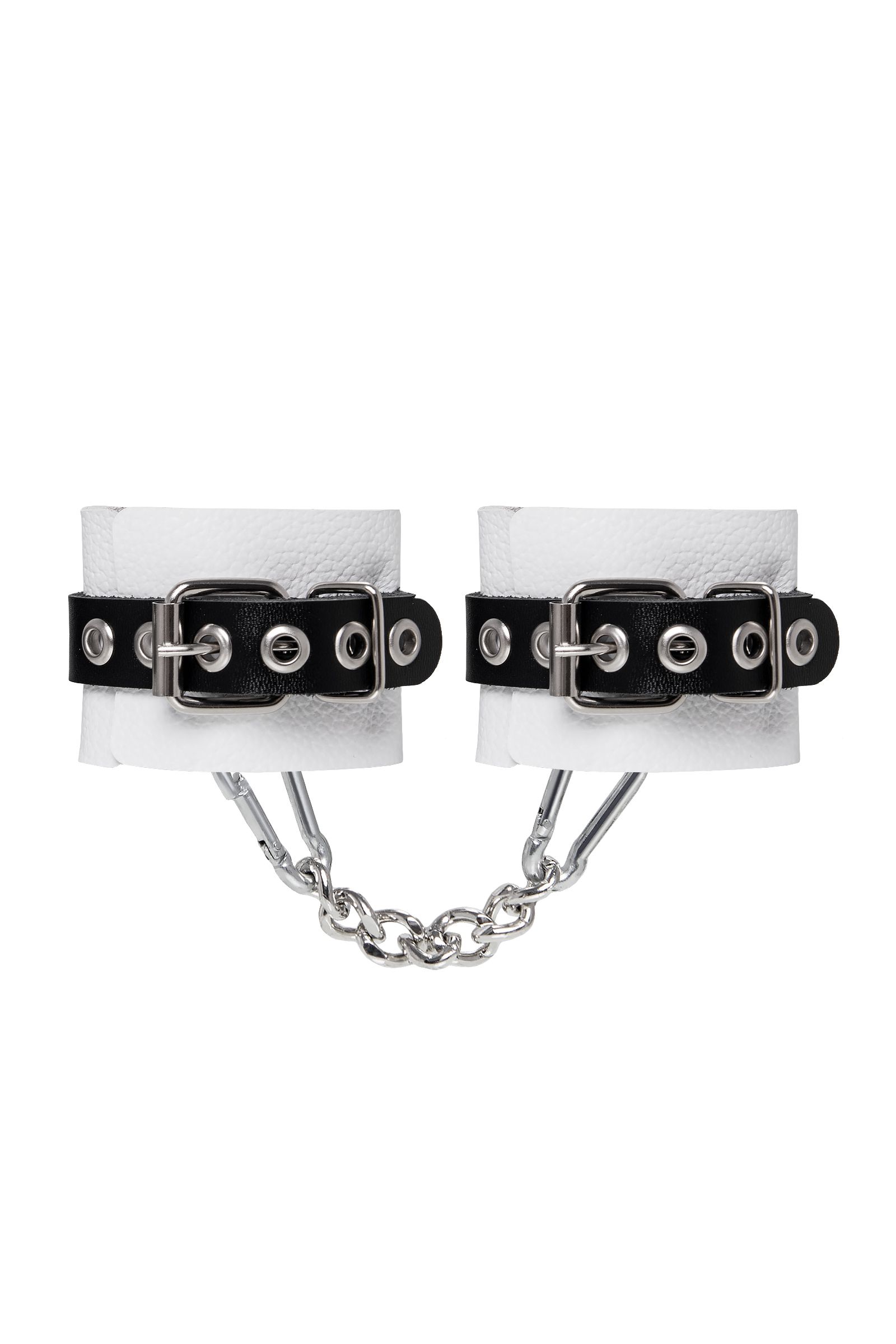Готовы играть по-взрослому? Не бойтесь своих желаний! Основатели бренда уверены: лучший способ избавиться от искушения — поддаться ему! Добавьте пикантную деталь в ролевую игру и воплотите самую смелую сексуальную фантазию в реальность! Эти мягкие, белые, кожаные наручники с люверсами на жёстких, чёрных ремешках могут стать стильным аксессуаром, а могут послужить вашим целям по своему прямому назначению. Частичное обездвиживание и невозможность двигать руками дают вам полную власть над партнером – взрослые игры для взрослых. Наличие двух колец и карабинов, соединенных между собой металлической цепочкой, позволяет использовать изделие как раздельно – аксессуар-манжеты, так и как наручники для фиксации. К широким металлическим кольцам также можно присоединить и другие аксессуары при помощи карабинов. Благодаря универсальному размеру наручники могут использоваться и мужчинами, и женщинами. Размер легко регулируется с помощью металлических пряжек, органично вписывающихся в общий стиль. Длина манжет — 18 см, ширина — 5,5 см. Длина сцепки — 20 см.
