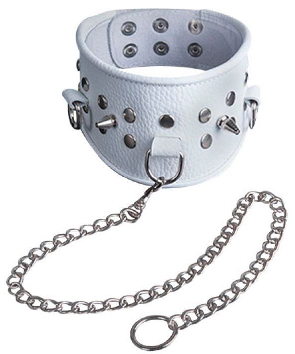 Ошейник с шипами изготовлен из натуральной кожи с велюровой подкладой. При изготовлении использована никелированная фурнитура. Размер универсальный. Один из основных атрибутов BDSM.