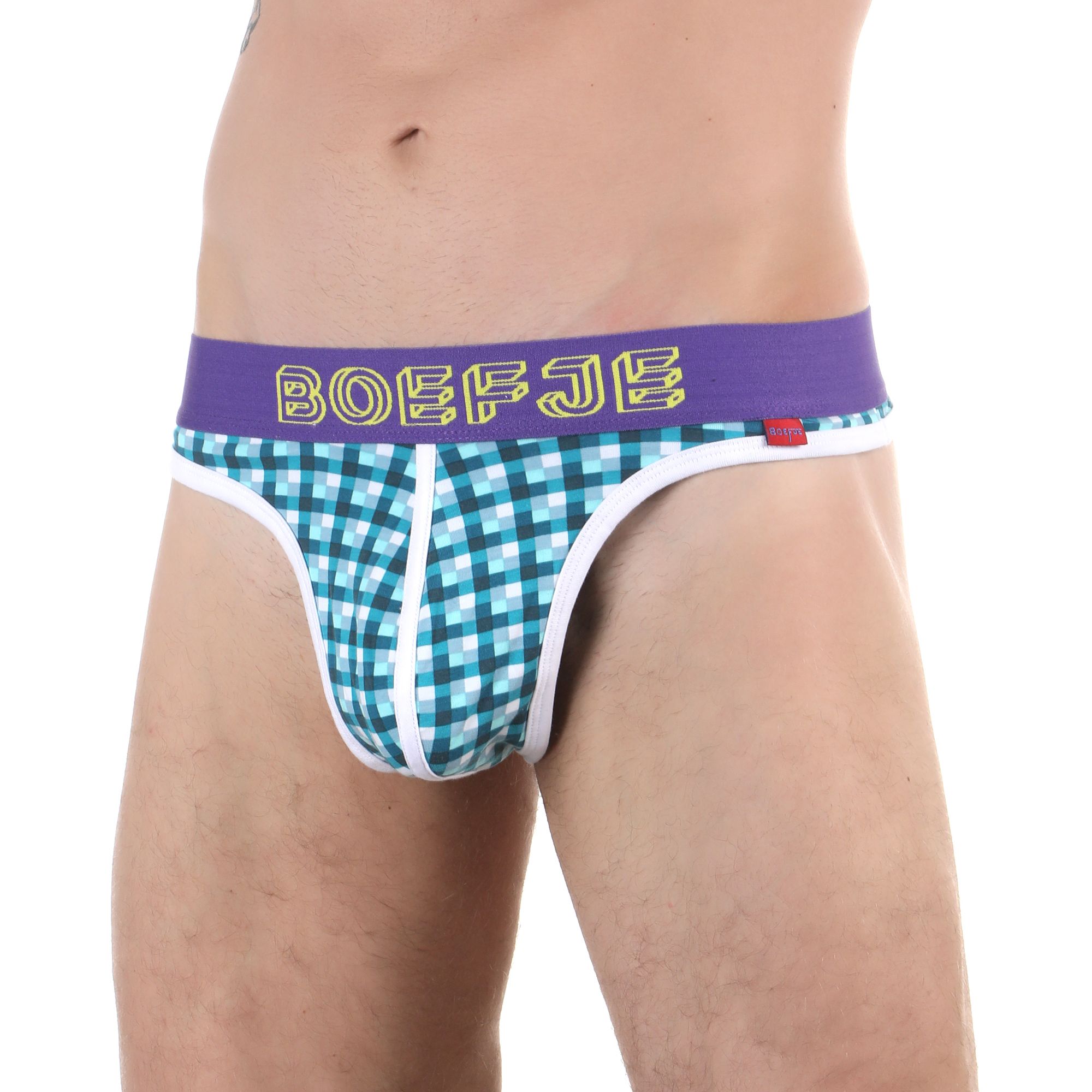 Бирюзовые клетчатые трусы-тонги с брендированным поясом