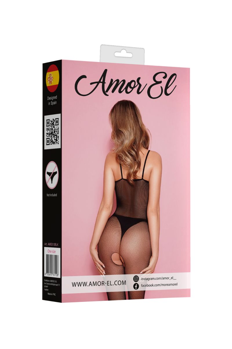 Боди-комбинезон на бретельках с открытым доступом. Дизайн выполнен в виде мелкой сетки. Благодаря использованию большего количества нейлона белье сохраняет очертания, не деформируется, растягивается и выгодно облегает фигуру. Трусики не входят в комплект!