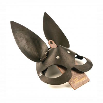 Гладкая маска Зайка с длинными ушками выполнена из натуральной кожи и снабжена широкой резинкой.