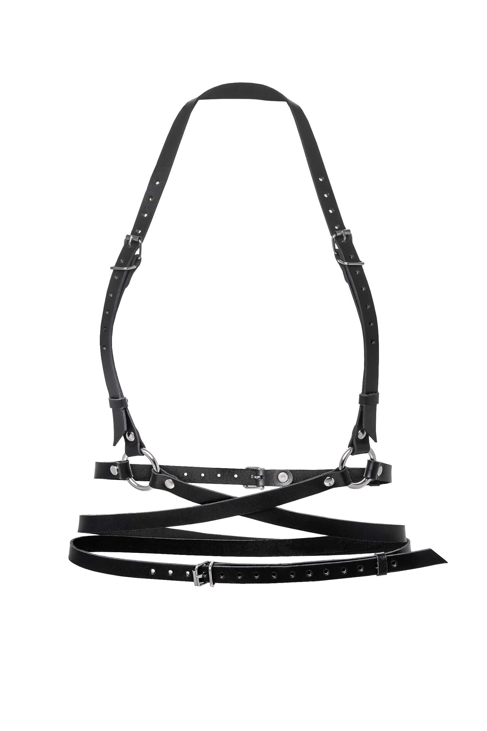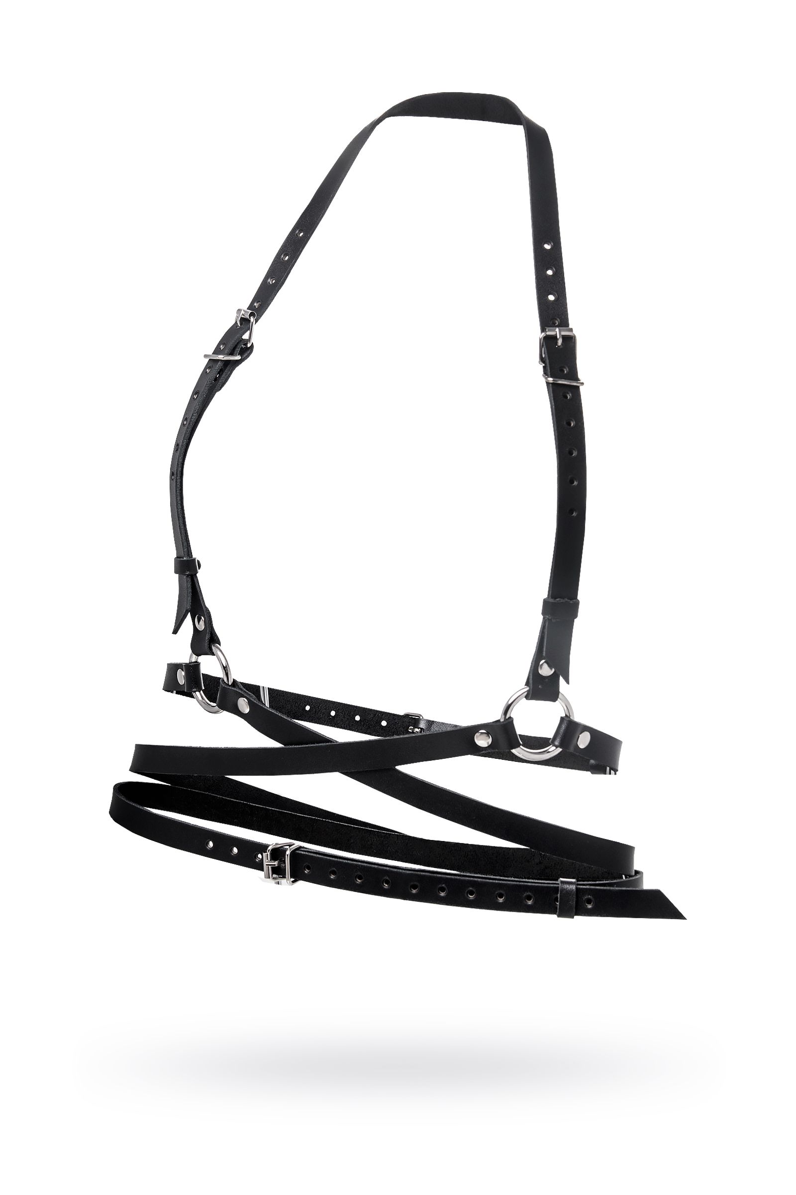 Добавьте дерзких нот в Ваш образ, с портупеей от Pecado. Она — надежный и крепкий атрибут для ролевых игр и жестких БДСМ-сессий. Аксессуар выполнен полностью из натуральной, черной кожи вручную. Материал обладает повышенной износостойкостью. Портупея тактильно приятная, плотно прилегает и комфортно сидит на теле. Каждый ремешок в меру мягкий и эластичный. Высота посадки портупеи регулируется с помощью застежки. Благодаря перекрестной обвязке на талии, аксессуар акцентирует внимание на талии и подчеркивает достоинства стана. Вся металлическая фурнитура выполнена из материалов высокого качества. Спереди, в области пояса, ремешки соединены металлическими кольцами. К ним можно присоединять и другие аксессуары. Портупею можно носить как на обнаженном теле, подчеркивая все достоинства фигуры, так и поверх нижнего белья, и одежды. Подходит для любителей сдержанного, минималистичного стиля.