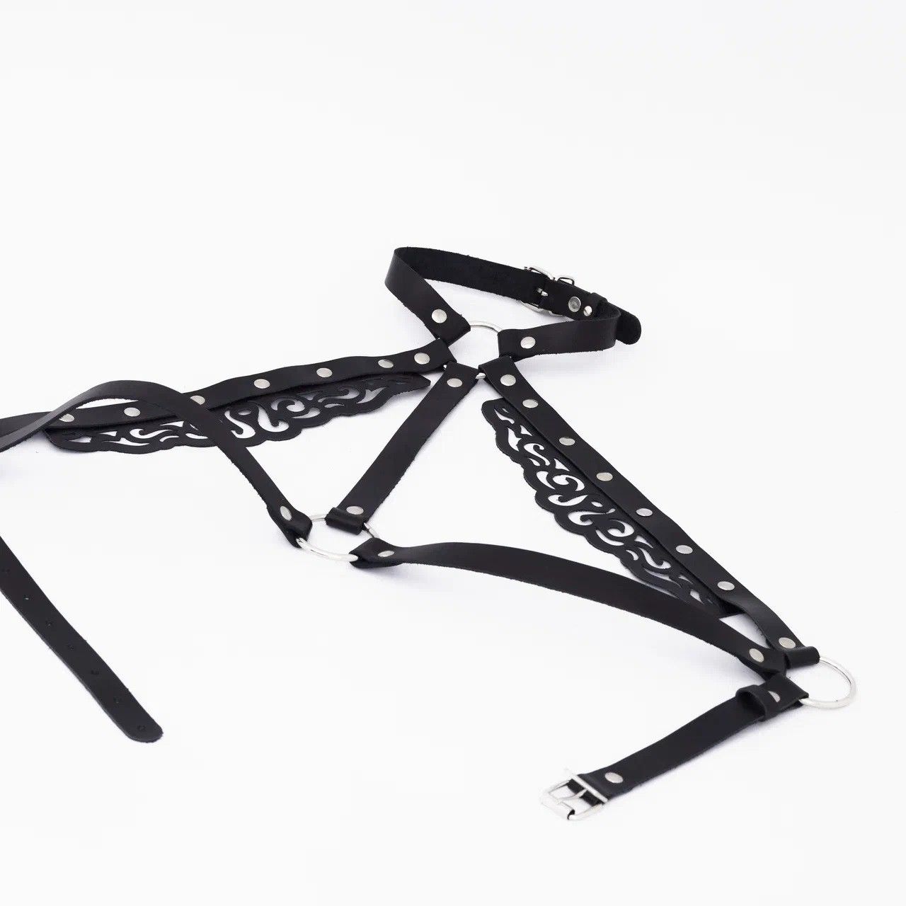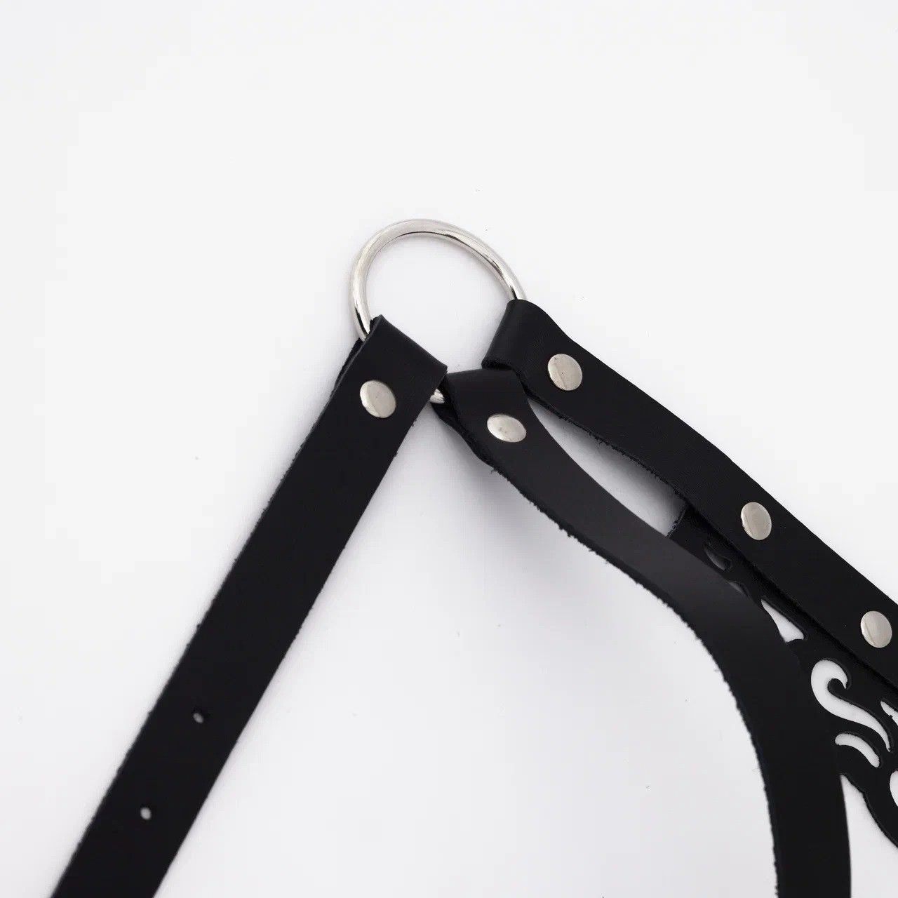 Эта резная портупея изготовлена из черной натуральной кожи и дополнена хромированной фурнитурой высокого качества. Ремешки соединены между собой кольцами и клепками. Благодаря большому диапазону регулировок портупея великолепно будет смотреться практически на любой фигуре. Доставляется в фирменной упаковке в виде брендированной деревянной коробки.