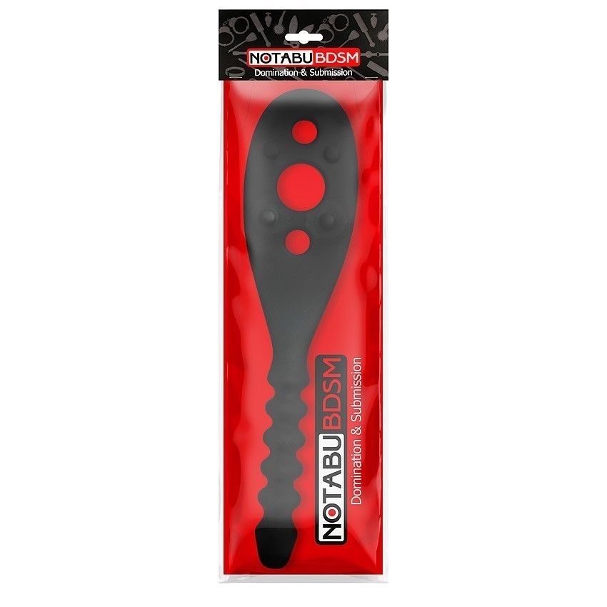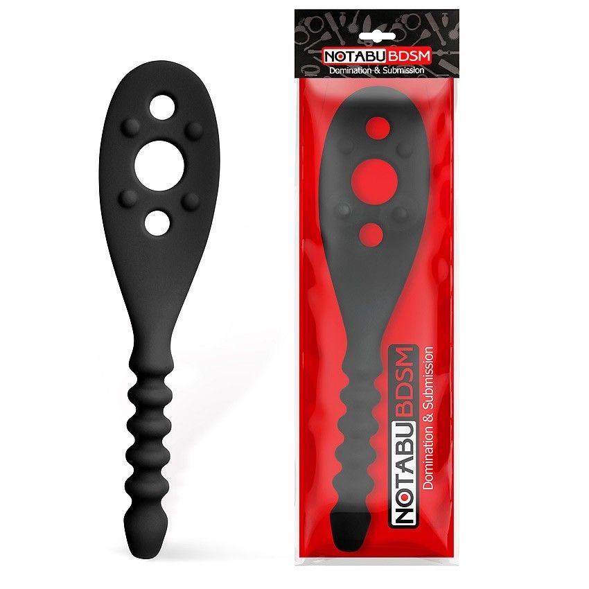 Двойной БДСМ аксессуар для любителей нестандартных эротических развлечений. Совмещает в себе шлёпалку и анальную втулку. Шлёпалка имеет широкую рабочую поверхность с жёсткими шипиками, усиливающими эффект от спанкинга. На шлёпалке имеются отверстия разного диаметра, которые могут отпечатываться на коже. Втулка имеет эргономичную форму ёлочки, способствующую более комфортному введению. Секс-игрушка изготовлена из приятного на ощупь материала, гнётся в разные стороны. Идеально подходит для «разогрева» перед интимной близостью, а также в качестве элемента в ролевой игре. Длина ручки — 11,5 см, диаметр — 2,5 см.