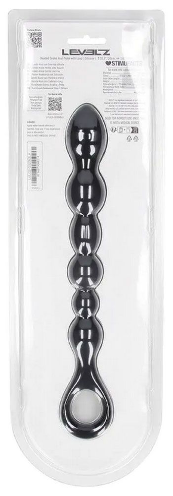 Черная силиконовая цепочка Beaded Snake Silicone Anal Probe with Loop — 26 см.