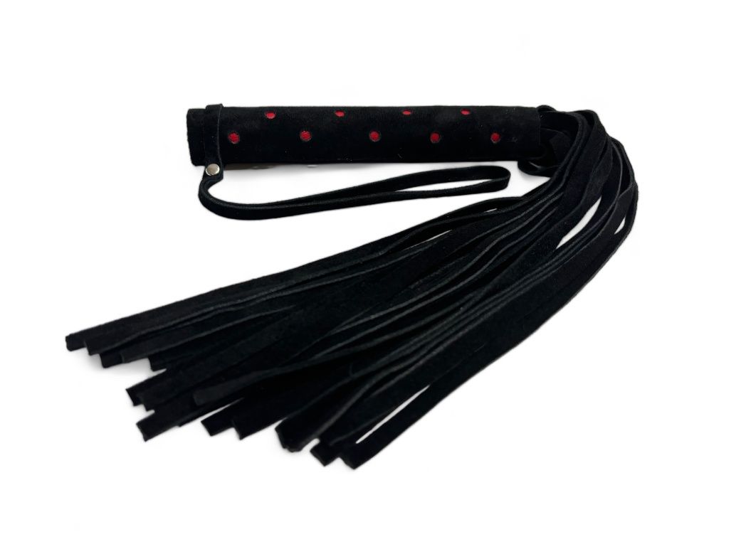 Черная замшевая плеть с красными точками на рукояти Red dot Princess — 43 см.