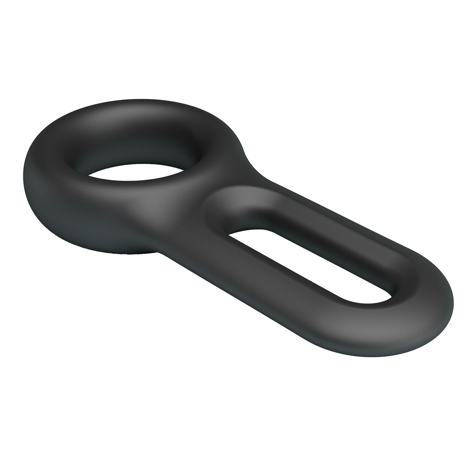 Черное эрекционное кольцо Oniel с петлёй для мошонки