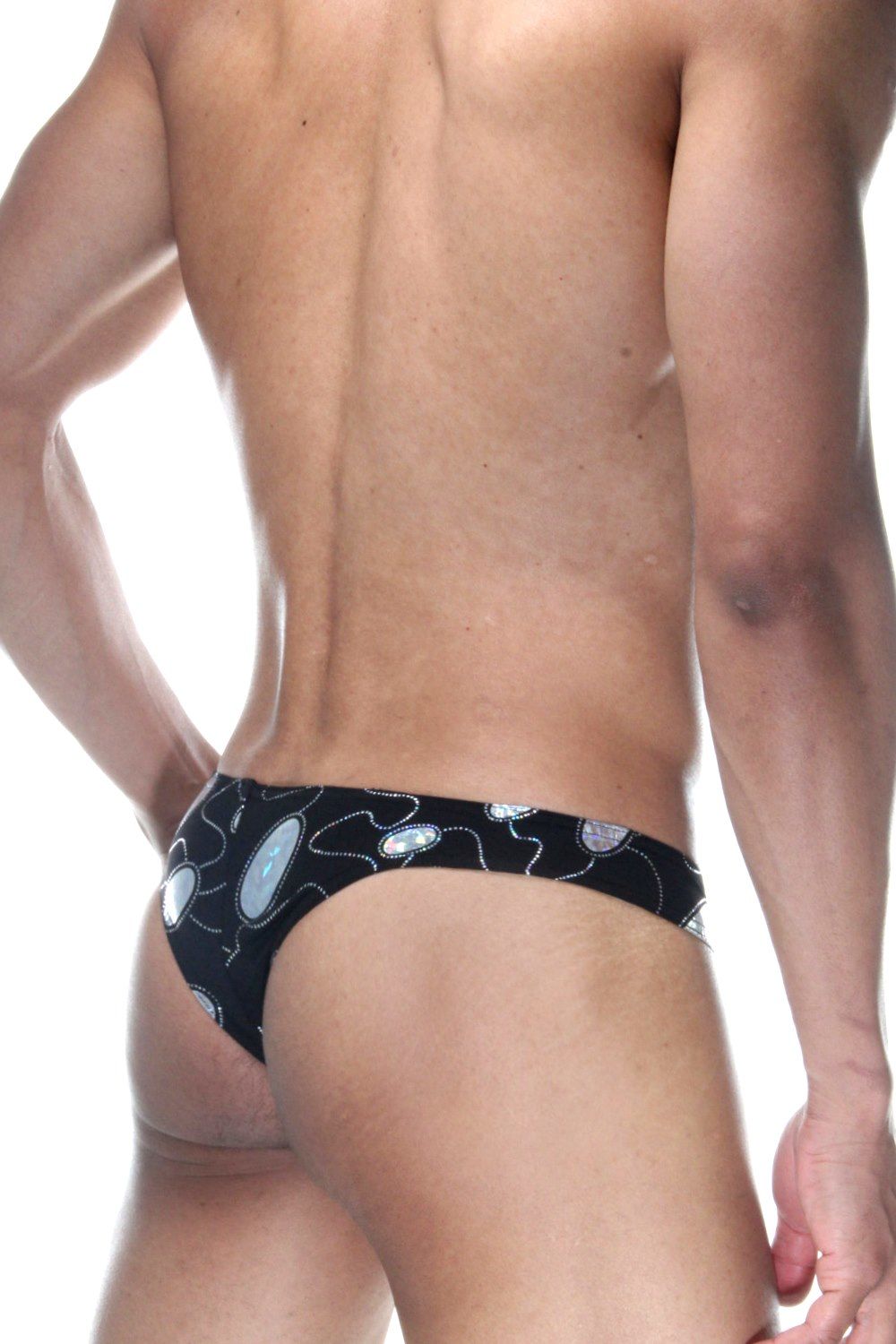 Черные мужские трусы-бразилиана с голографическими элементами.