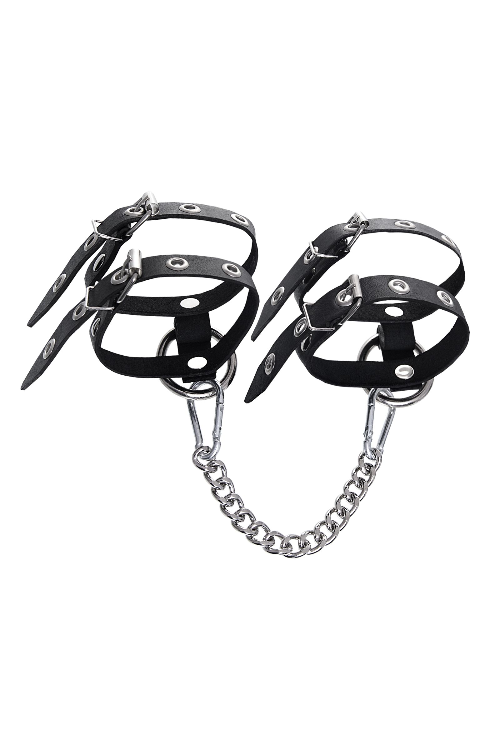 Эти однослойные кожаные оковы из двух ремешков могут стать стильным аксессуаром, а могут послужить вашим целям по своему прямому назначению. Частичное обездвиживание и невозможность двигать руками или ногами дают вам полную власть над партнером – взрослые игры для взрослых. Наличие двух колец и карабинов, соединенных между собой металлической цепочкой, позволяет использовать изделие как раздельно – аксессуар-манжеты, так и как оковы для фиксации. К широким металлическим кольцам также можно присоединить и другие аксессуары при помощи карабинов. Благодаря универсальному размеру оковы могут использоваться и мужчинами, и женщинами. Размер легко регулируется с помощью металлических пряжек, органично вписывающихся в общий стиль. Длина манжет — 30 см, ширина ремешков — 1,6 см. Длина сцепки — 19 см.