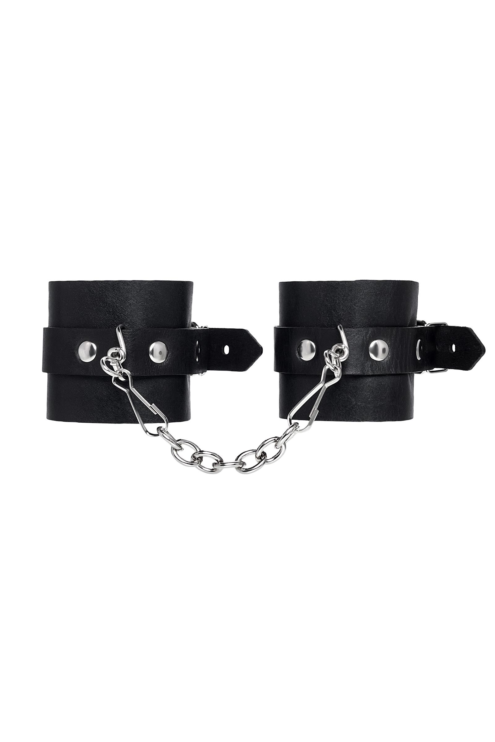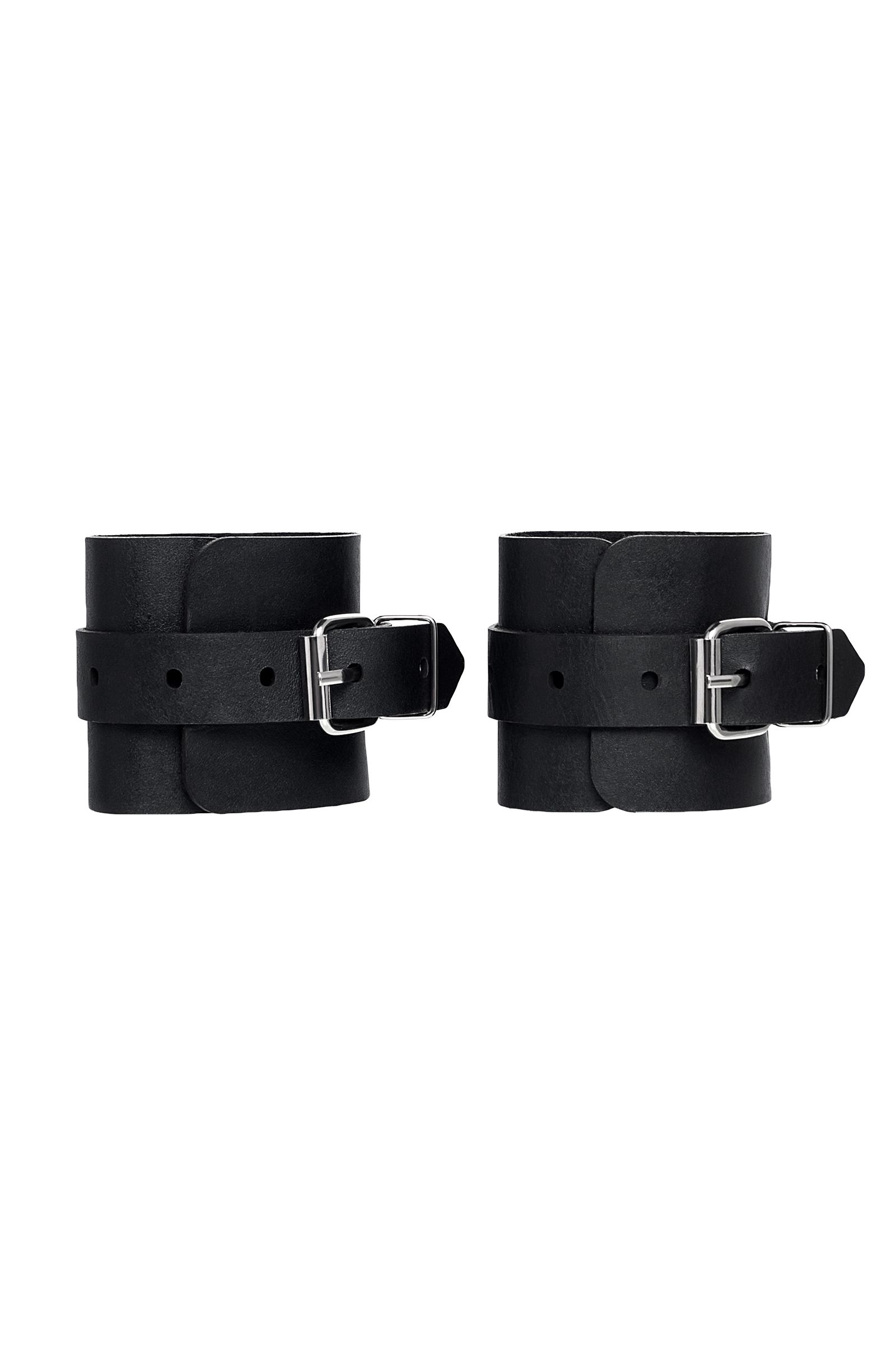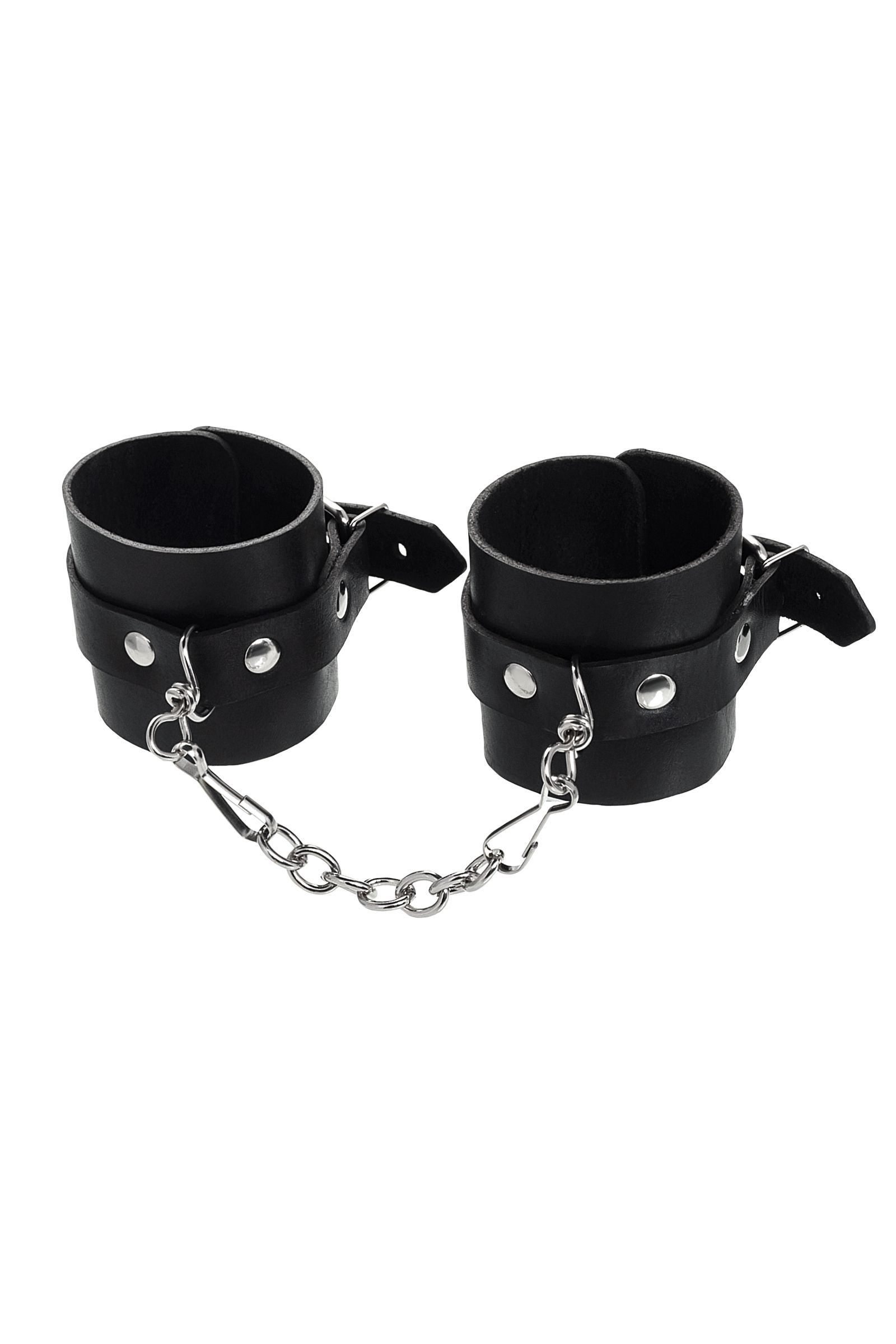 Однослойные кожаные наручники могут стать стильным аксессуаром на «свободных» руках, но могут послужить вашим целям и фантазиям по своему прямому назначению. Наличие двух карабинов и колец позволяет использовать изделие как раздельно – аксессуар-манжеты, так и как наручники для фиксации. К широким металлическим кольцам также можно присоединить и другие аксессуары при помощи карабинов. Благодаря универсальному размеру наручники могут использоваться и мужчинами, и женщинами. Размер легко регулируется с помощью металлических пряжек, органично вписывающихся в общий стиль. Длина манжет — 25 см, ширина — 5,5 см. Длина сцепки — 13 см.