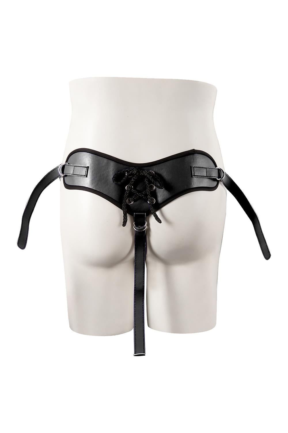 Трусики из искусственной кожи и металлических колец. Поставляется с 2 кольцами разных размеров. Совместимы с широким спектром базовых фаллоимитаторов. Диаметр колец — 4 и 5,4 см.
