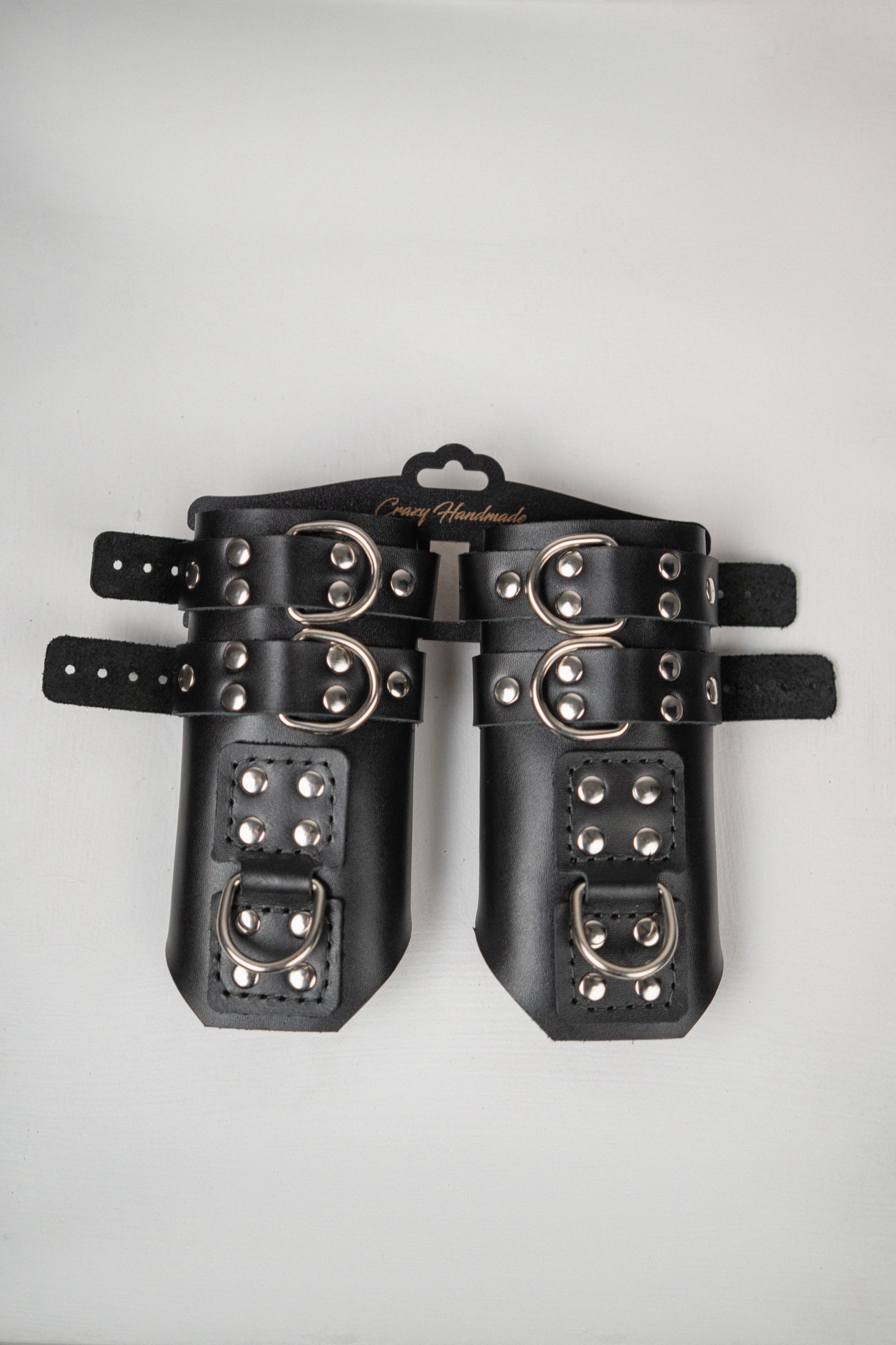 Очень крепкие наручники из натуральной кожи. Предназначены для подвешивания, имеют множество вариантов креплений. Благодаря специальному функционалу можно прикрепить их к крюку, тросу или качели. Они универсальны и многогранны, что позволяет разнообразить любовные игры. Полностью повторяют форму руки, не натирают кожу за счет качественных материалов, надежно фиксируются. Можно использовать и для классической фиксации рук. В комплекте прочная соединительная цепочка с двумя карабинами. Доставляется в фирменной упаковке в виде брендированной деревянной подложки. Длина манжеты — 25 см. Ширина манжеты — 17,5 см. Обхват — 16-30 см.