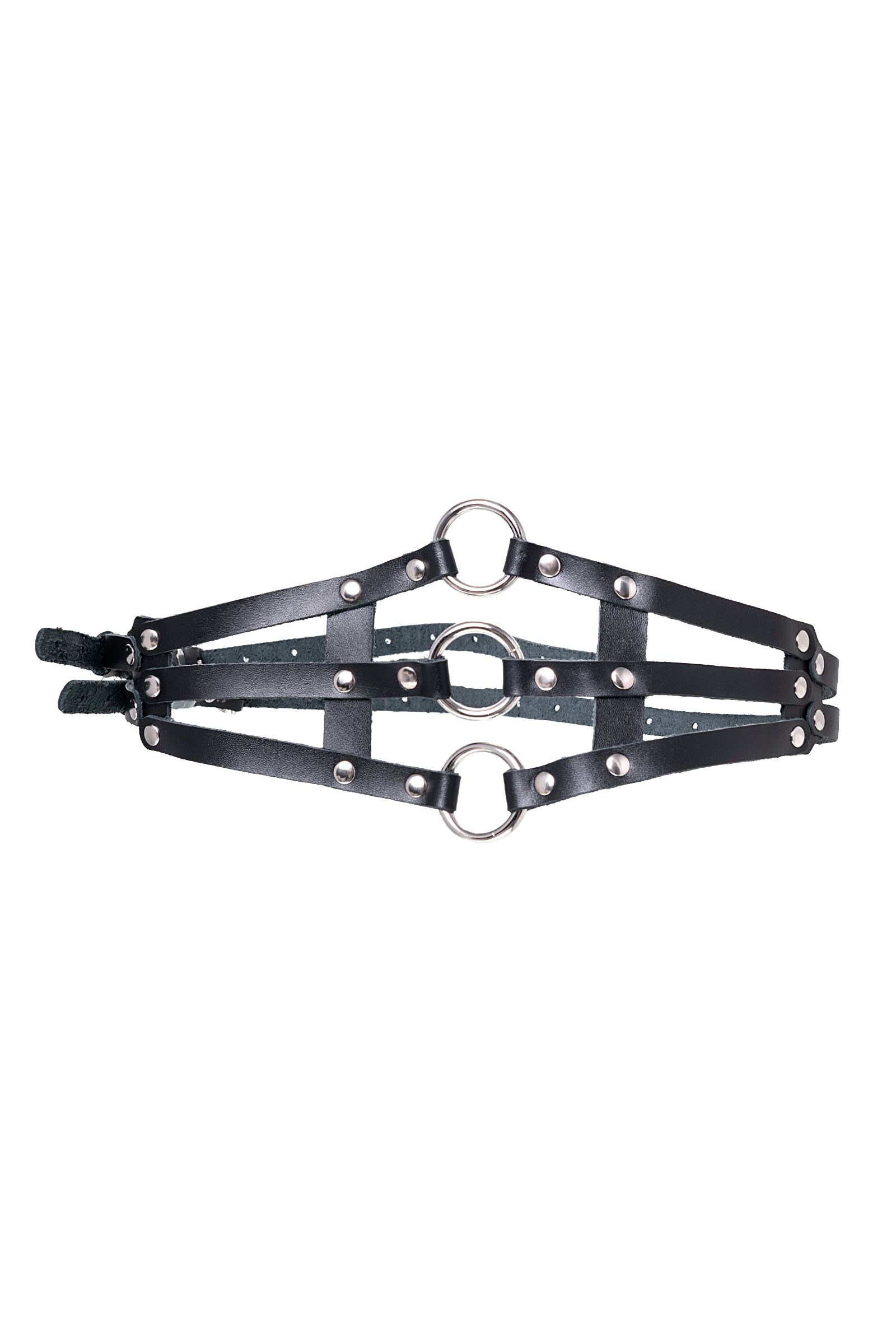 Сексуальный пояс от Pecado создаст будоражащий образ для БДСМ-сессии. Чёрные тонкие ремешки переплетены и соединяются в изящный аксессуар. Ремешки выполнены из мягкой, натуральной черной кожи вручную. Материал тактильно приятный и износостойкий. Металлические заклёпки по всей поверхности обеспечивают надёжность девайса. 3 стальных кольца по центру добавляют дерзости атрибуту. Идеальная посадка на тело регулируется с помощью металлической застежки. Портупея используется для сексуальных, ролевых БДСМ-игр. А также в качестве стильного аксессуара для тематических вечеринок и фотосессий. Универсальный размер.