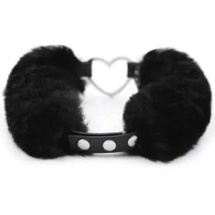 Черный меховой ошейник с металлическим сердечком