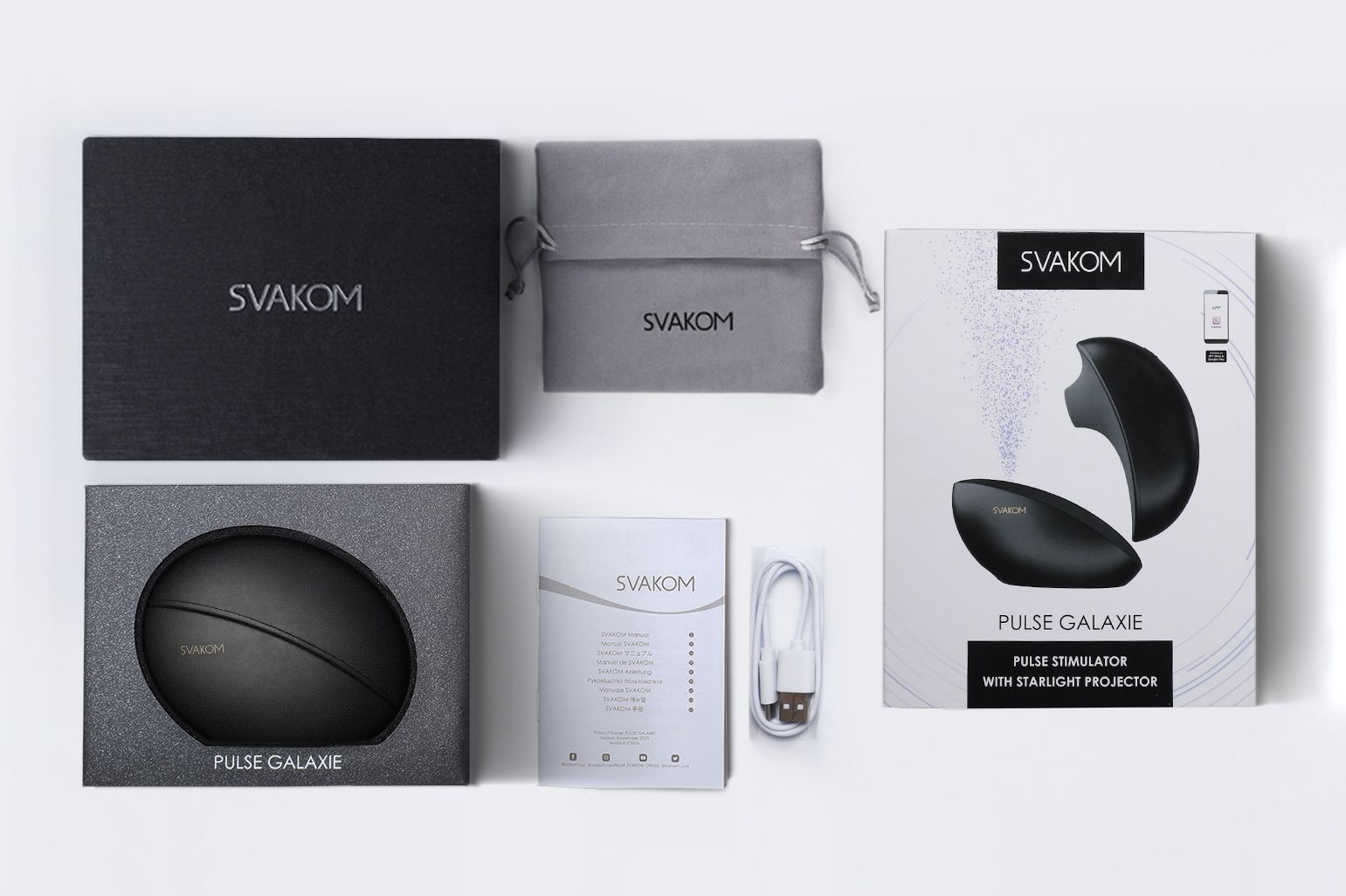 Вакуумный стимулятор Pulse Galaxie с проектором — никогда удовольствие не было таким безграничным. Встречайте волнующую и желанную новинку Svakom — Pulse Galaxie. Не из этого мира! Pulse Galaxy имеет оригинальный дизайн. Игрушка выглядит, как две половинки полумесяца. Одна часть — это сам вакуумный стимулятор, а вторая — аккуратная база для зарядки с разъемом Type C и проектором звездного неба! Включаешь проектор, и вокруг тебя сверкают звезды, романтично и многообещающе! 3 режима световой проекции на выбор. Pulse Galaxy выполнен из прочного анодированного пластика и высококачественного, приятного на ощупь силикона — мягкого и бархатистого. Даже просто держать в руках эту игрушку — уже наслаждение! В игрушке используется Pulse Technology: эксклюзивная технология, позволяющая подвижному мембранному барабану стимулировать эрогенные зоны с невероятной глубиной. Каждое прикосновение — как волна удовольствия, и ты словно улетаешь в космос от этих ощущений! Всего у Pulse Galaxy 5 режимов и 5 уровней интенсивности. Легким нажатием так легко подобрать ритм под настроение и желание. Можно ракетой унестись к вершинам наслаждения или, наоборот, медленно парить в невесомости удовольствия. Будучи действительно продвинутой игрушкой, Pulse Galaxy управляется через мобильное приложение от Svakom. Всегда можно выйти за рамки и синхронизировать стимулятор с любимыми треками: получать наслаждения под знакомые ритмы. Pulse Galaxy от Svakom — клиторальный стимулятор, проектор… да просто космос, а не игрушка! Испытайте неземное наслаждение с Pulse Galaxie!