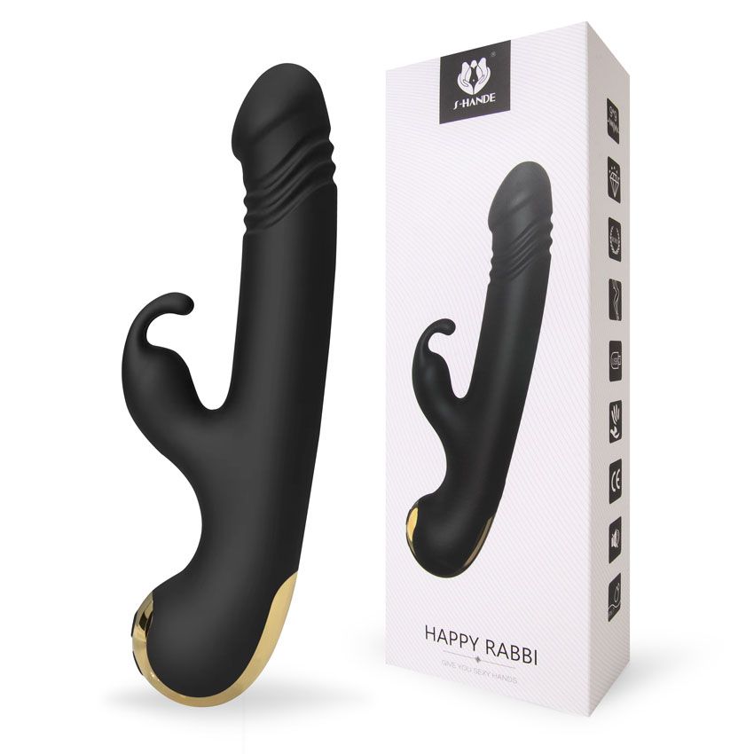 Оригинальный вибромассажёр с вибрацией и возвратно-поступательными движениями внесёт яркость и разнообразие в интимную жизнь одинокой дамы или пары. 9 режимов вибрации, 9 режимов возвратно-поступательных движений. Может использоваться для прелюдии или усилить удовольствие во время секса. Разнообразные режимы вибрации и возвратно-поступательных движений повысят уровень наслаждения. Специальный отросток в виде кролика будет стимулировать клитор. Интимный аксессуар оснащён двумя виброэлементами, что позволяет ощущать вибрацию по всей поверхности. Один виброэлемент находится в стволе, другой — в небольшом отростке-кролике. Вибромассажёр изготовлен из мягкого приятного на ощупь материала. Прост в использовании и уходе. Управление возвратно-поступательными движениями Включение/выключение: нажать и несколько секунд удерживать кнопку «вкл./выкл.» на корпусе изделия. Должен загореться/погаснуть световой индикатор и прозвучать звуковой сигнал. Включение/переключение режимов возвратно-поступательных движений: краткое нажатие той же кнопки. Выключение возвратно-поступательных движений: пролистнуть все режимы до выключения нажать и несколько секунд удерживать кнопку «вкл./выкл.». Управление вибрацией Включение/переключение режимов вибрации: краткое нажатие соответствующей кнопки. Вибрация работает одновременно в стволе и специальном отростке. Выключение вибрации: пролистнуть все режимы до выключения нажать и несколько секунд удерживать кнопку «вкл./выкл.». Вибрацию и возвратно-поступательные движения можно включать по отдельности или одновременно. Если включены и вибрация, и возвратно поступательные движения, полностью выключить гаджет можно путём нажатия и удерживания кнопки «вкл./выкл.». Рабочая длина — 12,5 см.