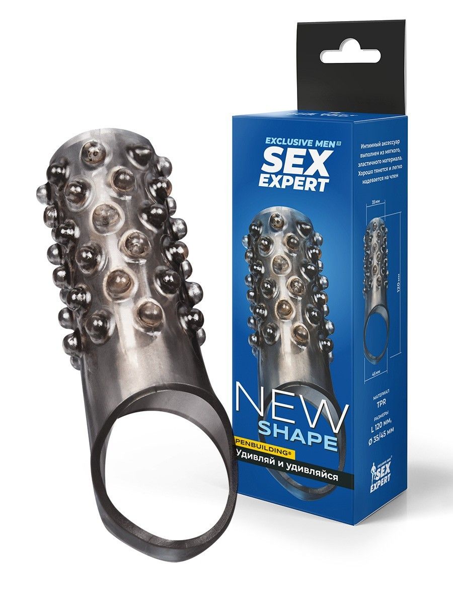 Дымчатая насадка на пенис с выпуклостями — 12 см.