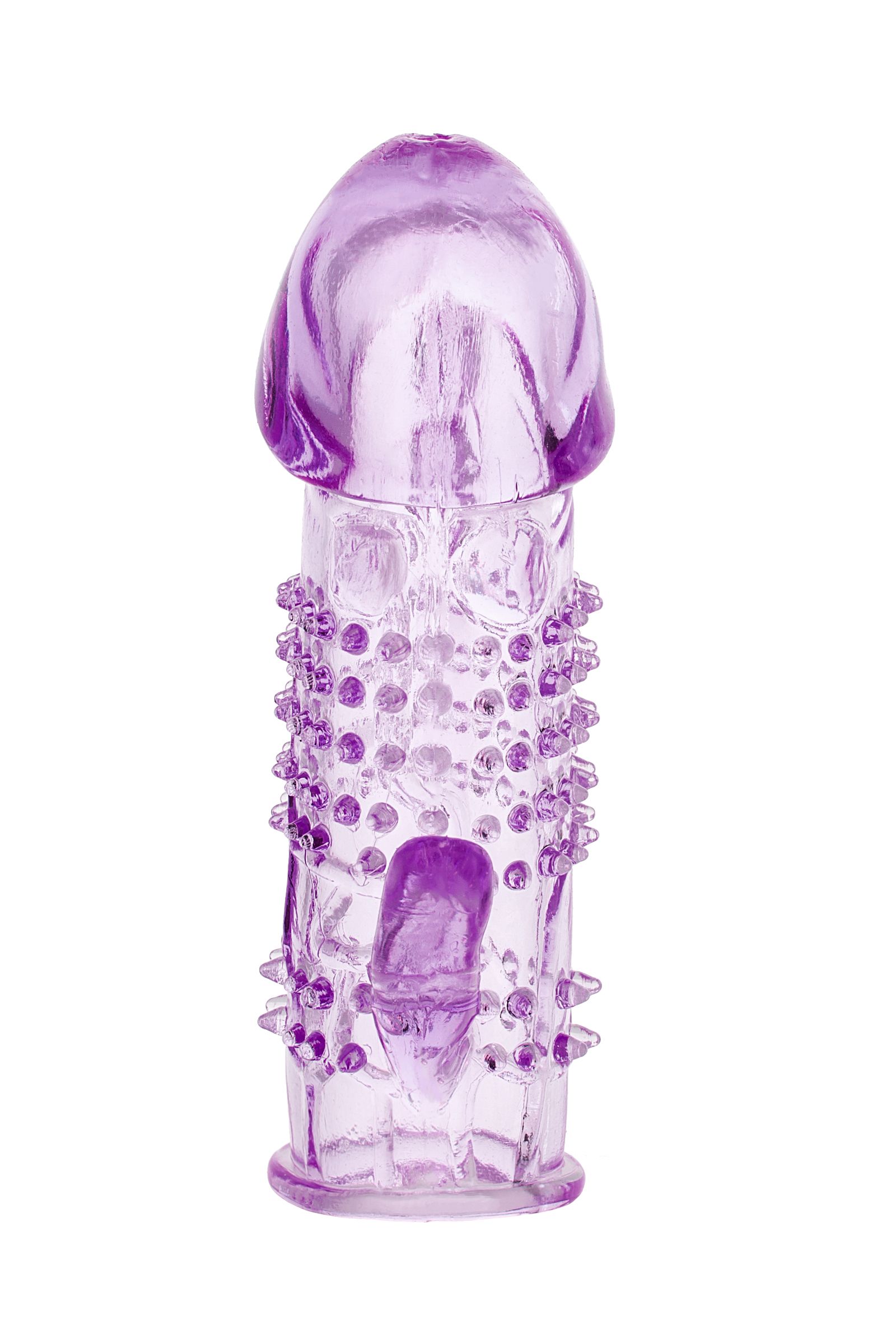 Поверьте, вашему члену будет «к лицу» фиолетовый цвет. Как и кажущиеся острыми шипы, опоясывающие ствол. А главное, в этой насадке вы становитесь пусть и не сверхчеловеком, но отличным любовником! Рельеф вкупе с отростком-коготком для клиторальной стимуляции подарит вашей партнёрше море ярких ощущений и мощный оргазм!