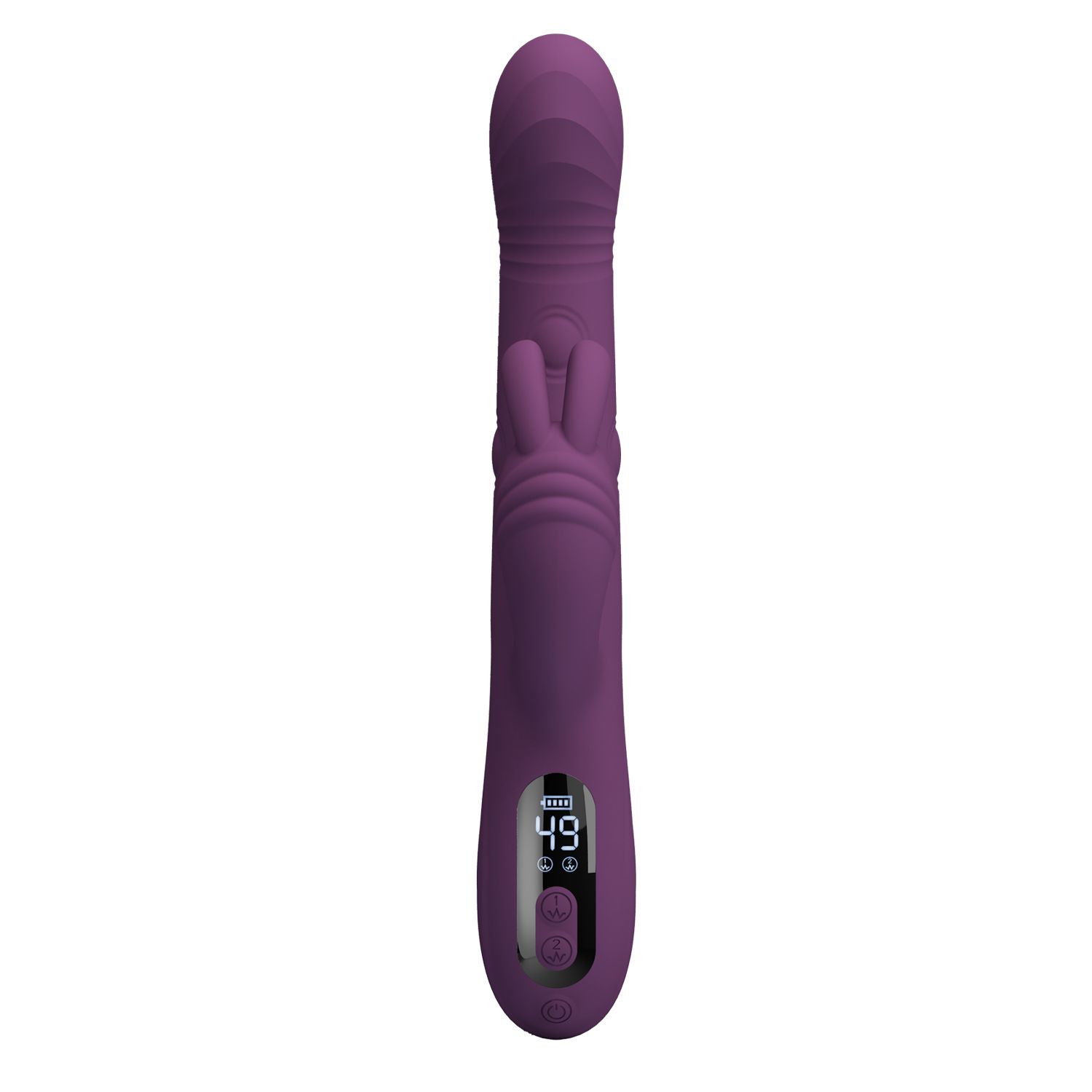 Фиолетовый вибромассажёр-кролик Dee. 9 режимов вибрации, 4 режима кивания, 4 режима постукивания. Рабочая длина — 14 см.