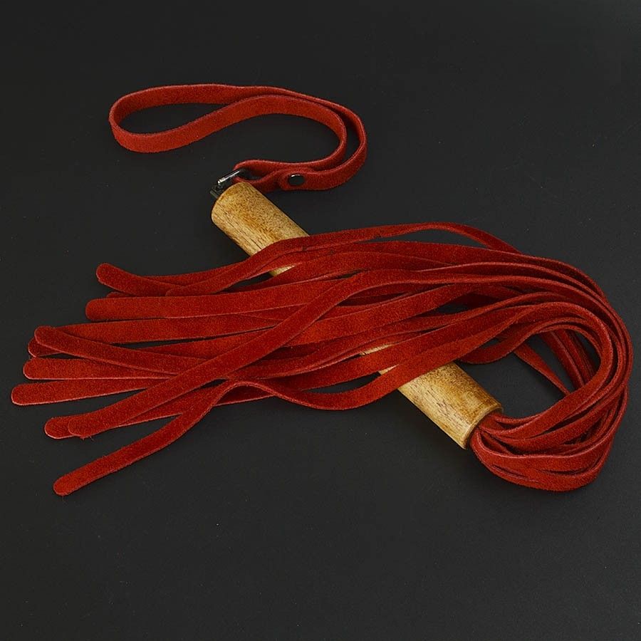Красная велюровая плеть с деревянной рукоятью — 44 см.
