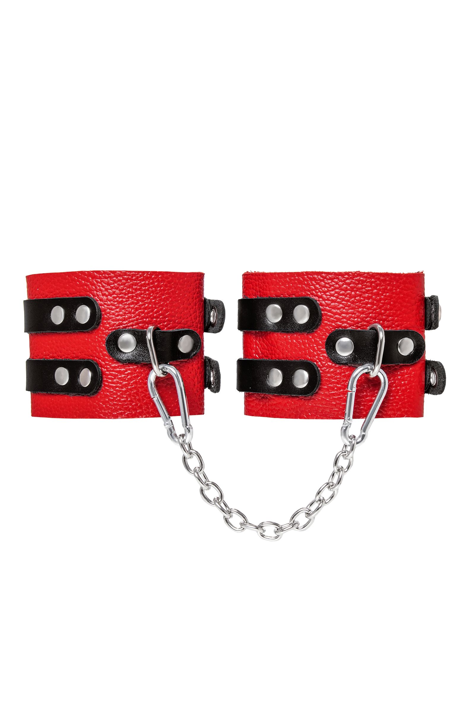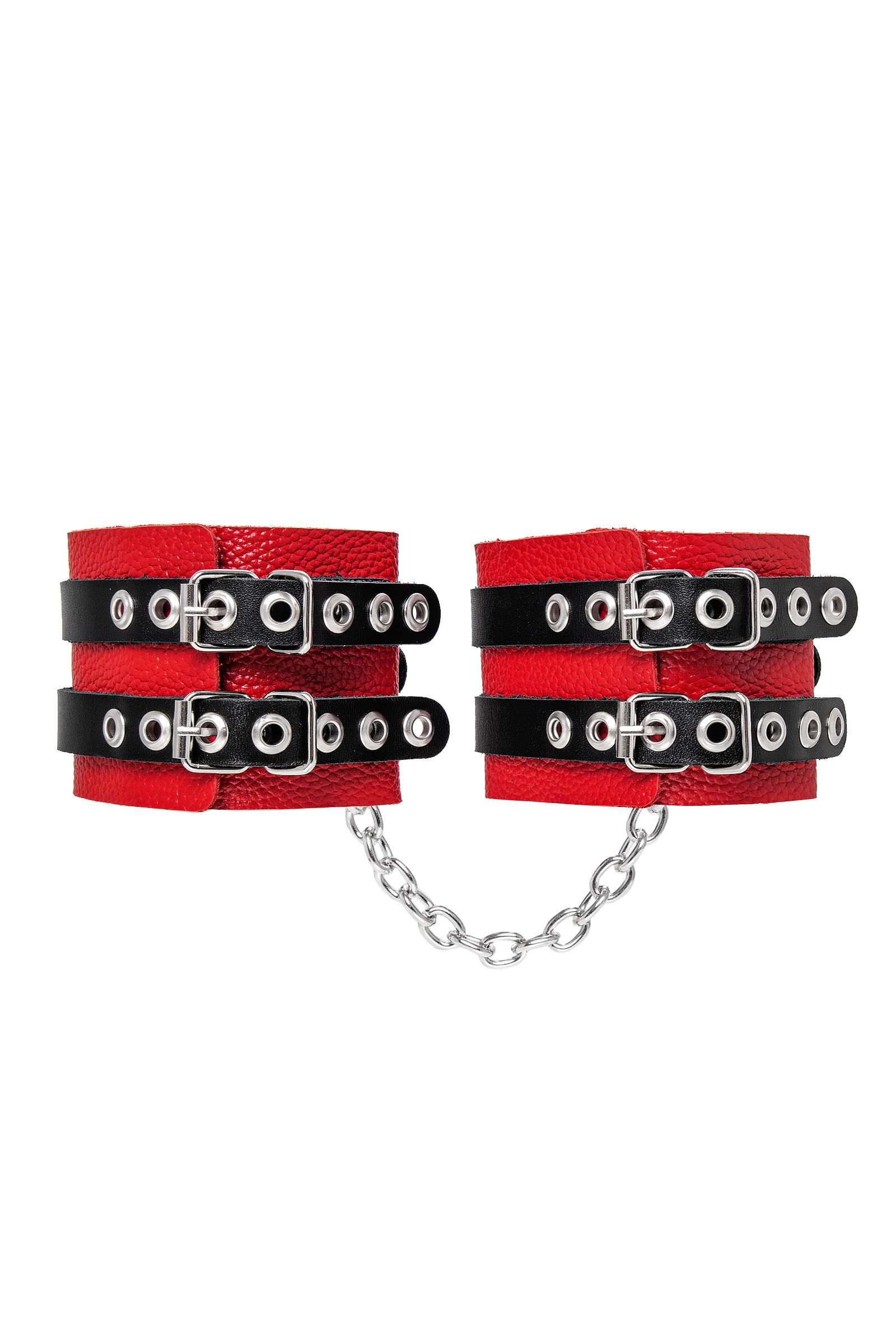 Мягкие оковы с двумя жёсткими ремешками от Pecado помогут обездвижить партнера во время сексуальных прелюдий или жестких БДСМ-играх. Оковы изготовлены полностью из красной, натуральной кожи. Ремешки выполнены из чёрной жёсткой кожи, украшены люверсами. Выделка материала произведена вручную. Ремешки и широкая манжета хорошо держат форму: не тянутся и не мнутся. Качественная металлическая фурнитура добавляет лоска изделию, а аромат натуральной кожи повышает градус возбуждения. Благодаря широкому запасу регулировок, можно подобрать необходимый обхват. Аксессуар удобно застегивать и легко расстегивать. При правильном использовании не оставляет следов на теле и не доставляет дискомфорта. Манжеты оков соединяется между собой помощью двух карабинов и съемной стальной цепочки. Подходит и для женских, и для мужских ног. Длина манжет — 25 см, ширина — 7 см. Длина сцепки — 20 см.