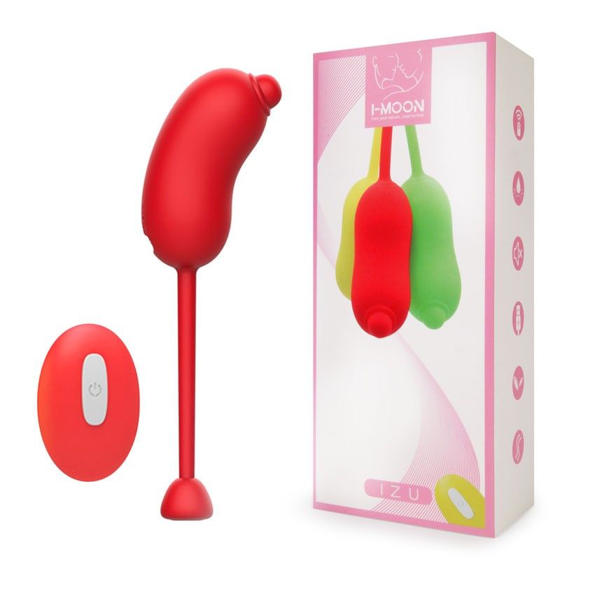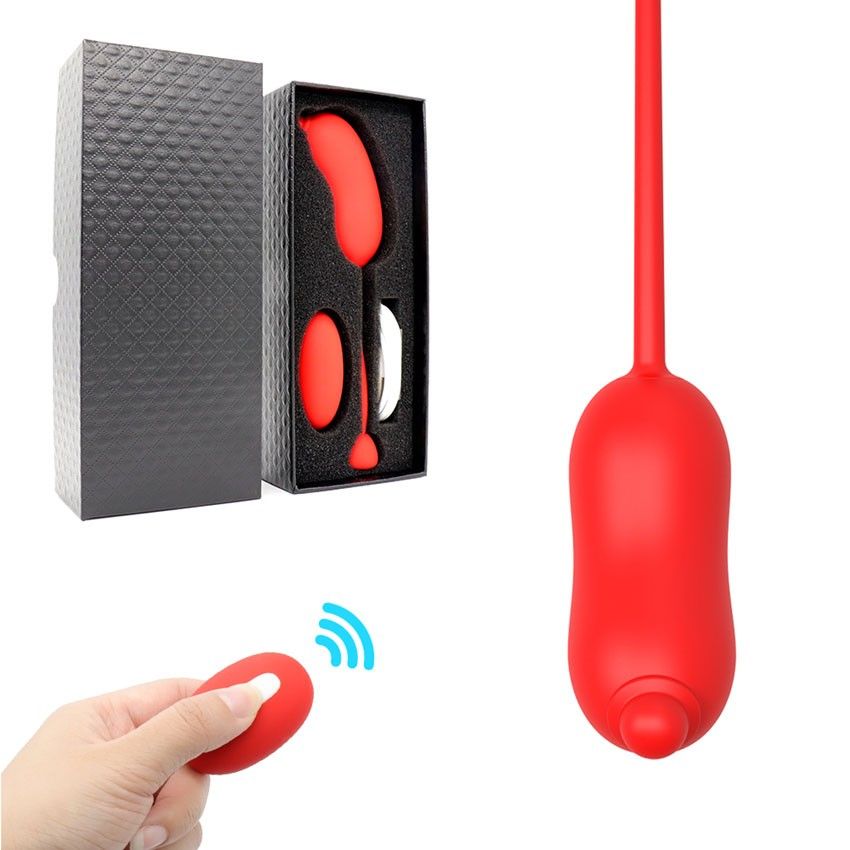 Красное виброяйцо с пультом ДУ. 10 режимов вибрации. Рабочая длина — 7,2 см.