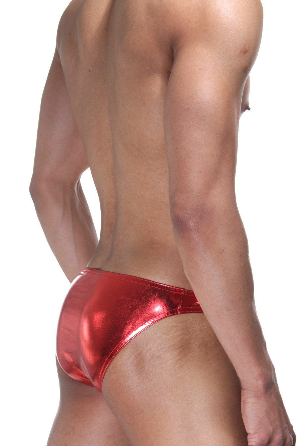 Красные блестящие мужские трусы-слипы.