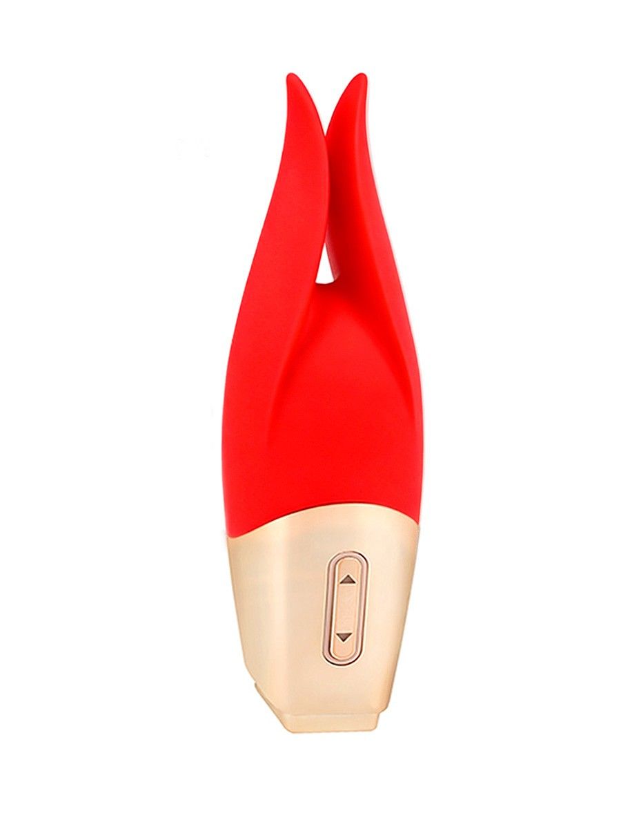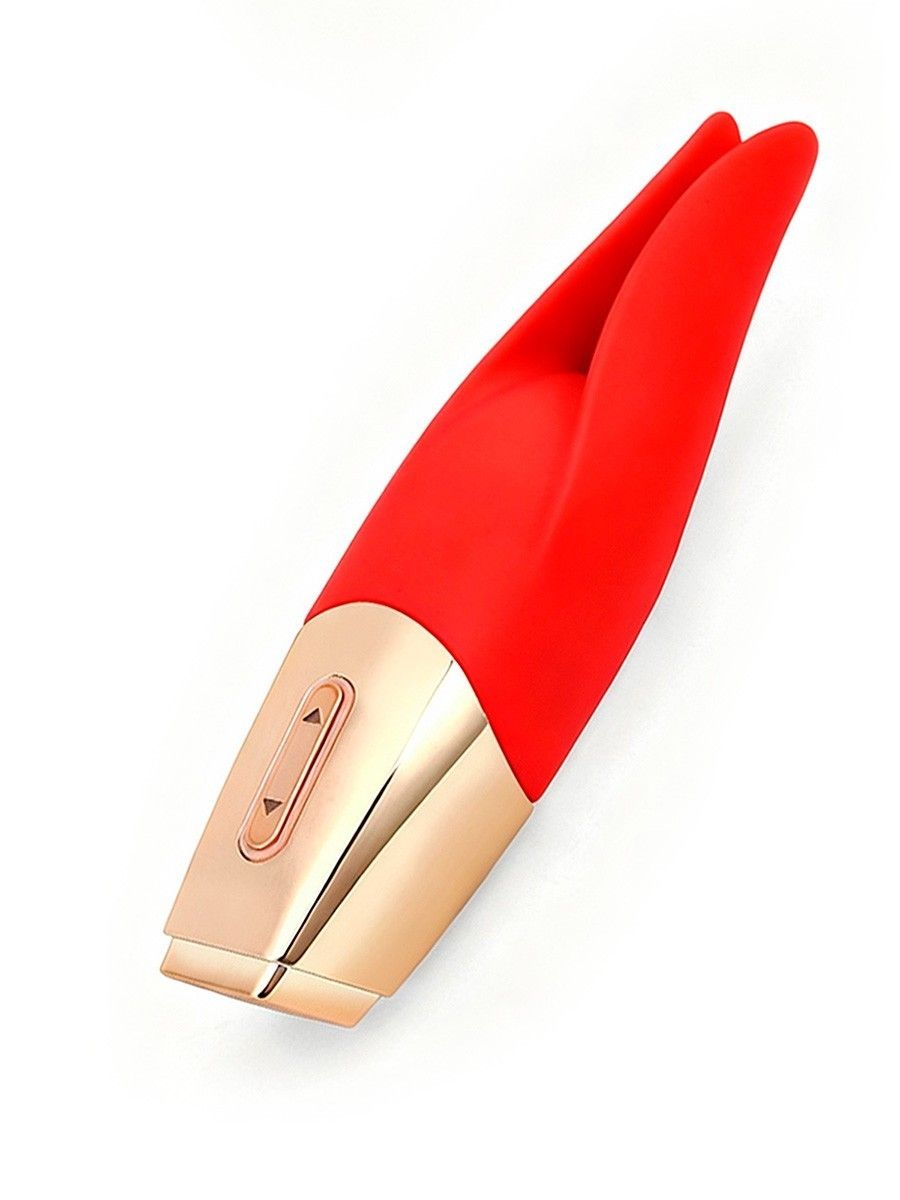 Красный мини-вибратор с раздвоенным кончиком — 12,3 см.