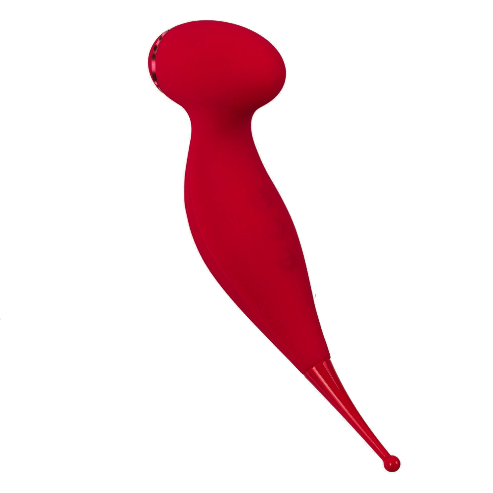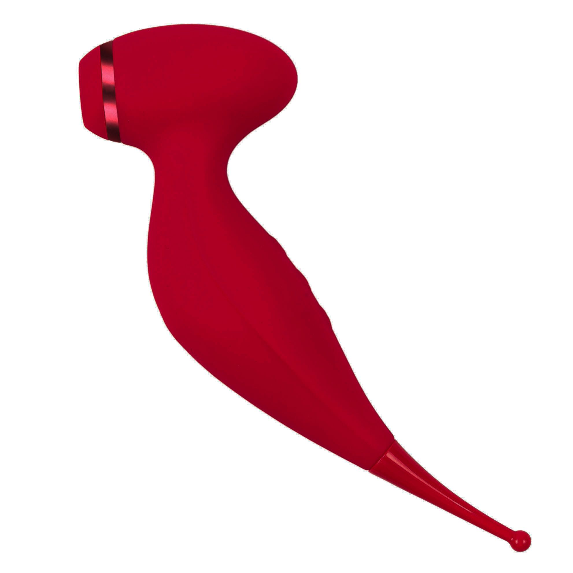 Isadora – оригинальный вакуумно-волновой стимулятор с вибрацией, внешний вид которого напоминает колибри. Isadora сочетает в себе два типа стимуляции: вакуумно-волновую и вибрацию. Стимуляторы расположены на разных концах игрушки и работают только по отдельности. Когда вы включаете вибрацию, волновая стимуляция выключается, и наоборот. Isadora приятно держать в руке, его округлая форма не позволяет игрушке выскальзывать даже на самом мощном режиме вибрации. Игрушка создана с учётом анатомии: диаметр раструба вакуумного стимулятора клитора – 1.5 см, что подходит для большинства женщин. Вакуумно-волновой стимулятор имеет 7 разных режимов работы. Им можно воздействовать не только на клитор, но и на область вокруг него и даже на соски. Вибратор Isadora также имеет 7 режимов, чтобы вы могли выбрать то, что понравится именно вам. Точечный вибратор многофункционален – им можно стимулировать самые разные эрогенные зоны на своем теле или теле партнера. Играть с Isadora можно даже в душе, главное – не погружать её в воду полностью. Управлять Isadora очень просто, на корпусе игрушки всего три кнопки: кнопка питания и кнопки управления стимуляторами. Чтобы включить Isadora, нажмите и удерживайте в течение двух секунд кнопку питания (средняя). Виброотклик и световая индикация подскажут, что игрушка перешла в режим ожидания. Чтобы включить вакуумно-волновой стимулятор и переключать режимы его работы, коротко нажимайте на кнопку управления режимом (кнопка с губками). Чтобы включить точечный вибратор и переключать режимы его работы, коротко нажимайте на кнопку управления режимом (кнопка с волной). Чтобы выключить игрушку, снова нажмите и удерживайте кнопку питания.