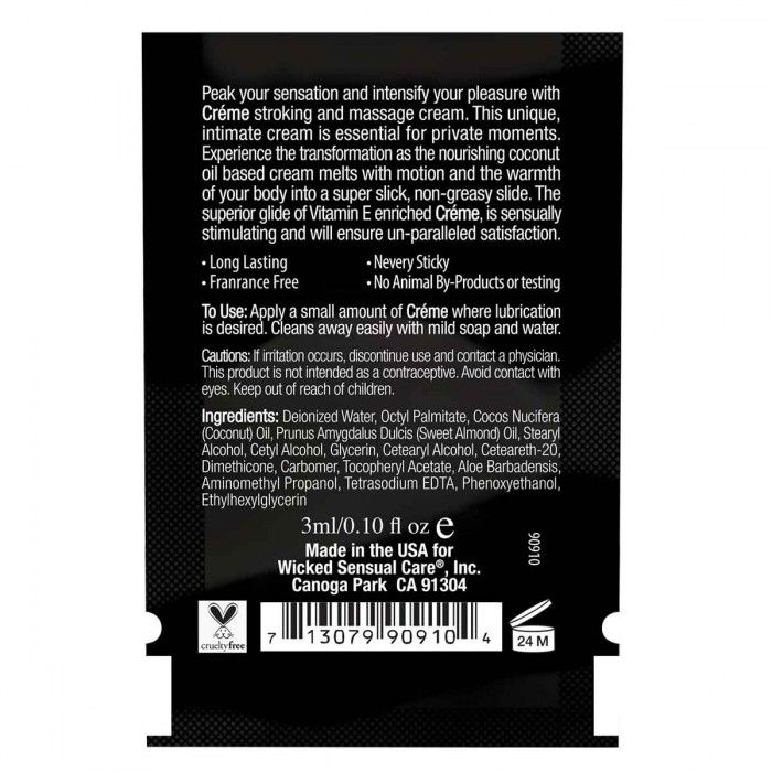 Разбудите свои ощущения и увеличьте удовольствие с кремом Wicked Stroking and Massage Creme. Этот уникальный крем без аромата для интимных поглаживаний и массажа на основе масла кокоса и сладкого миндаля идеально подходит для интимных моментов в одиночку или с партнером. Испытайте трансформацию, когда обогащенный питательный крем тает от тепла вашего тела и превращается в нежную жидкость. Превосходное скольжение этого обогащенного витамином Е крема чувственно стимулирует и обеспечивает непревзойденное удовлетворение. Веган продукт, не тестировавшийся на животных. Смывается мягким мылом и водой. Идеален для мастурбации, или массажа. Не использовать как лубрикант, только для внешней мастурбации.