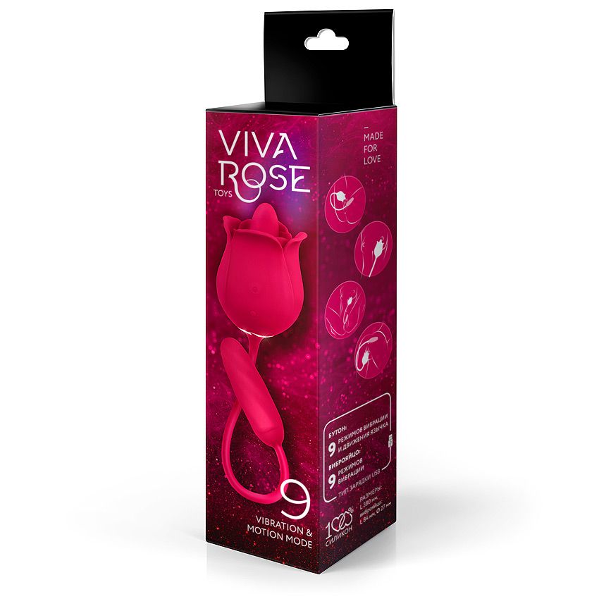 Интимный аксессуар в виде розы вознесёт на вершину блаженства. Чувственный язычок в бутоне нежно ласкает соски, клитор и другие эрогенные зоны с помощью 9 режимов вибрации и движения язычка. Вторая часть секс-игрушки (виброяйцо), стимулирует влагалище и анальное отверстие с помощью смены 9 виброрежимов. Вибрация ощущается и в виброяйце, и в соединительном шнурке. Язычок в бутоне и виброяйцо могут работать одновременно или по отдельности. Вкл./выкл. работы язычка в бутоне — нажать и 3 сек. удерживать соответствующую кнопку на корпусе изделия. Должен загореться/погаснуть световой индикатор. Переключение режимов вибрации язычка — краткое нажатие той же кнопки. Вкл./выкл. вибрации в виброяйце — нажать и 3 сек. удерживать соответствующую кнопку на корпусе изделия. Должен загореться/погаснуть световой индикатор. Переключение виброрежимов — краткое нажатие той же кнопки. Длина виброяйца — 8,4 см., диаметр — 2,8 см.