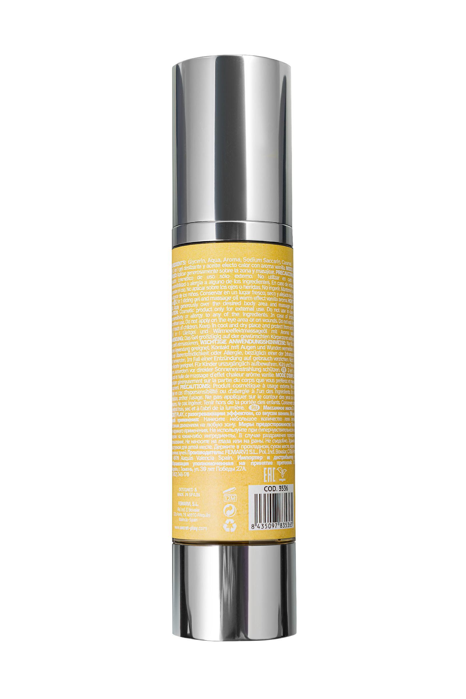 Vanilla Hot Effect — это массажное масло 2 в 1 от испанского бренда Secret Play, которое откроет для вас новые грани наслаждения. Его разогревающий эффект и чувственный вкус ванили созданы, чтобы превратить ваши интимные моменты в страстное и незабываемое путешествие. Это универсальное средство добавит тепла и нежности к любым ласкам, идеально подходя для чувственного массажа, оральных игр и прелюдий, которые плавно переходят к проникновению. Масло делает прикосновения невероятно мягкими и приятными, его текстура буквально тает на коже, создавая ощущение легкого тепла, которое усиливает возбуждение и пробуждает чувственность. Попробуйте нанести его на шейку, нежно пройдитесь по ключицам, остановитесь на сосках — и наслаждайтесь тем, как каждый поцелуй и прикосновение становятся более насыщенными и горячими. Его ванильный аромат и вкус наполняют атмосферу сладким предвкушением и создают волнующее настроение, помогая расслабиться и настроиться на волну удовольствия.Vanilla Hot Effect — это больше, чем просто массажное масло: это средство для создания близости и интимности, которое идеально подходит для массажа, прелюдий и оральных ласк. Позвольте его нежному теплу и сладкому аромату ванили разогреть ваши чувства и настроить на волну страсти