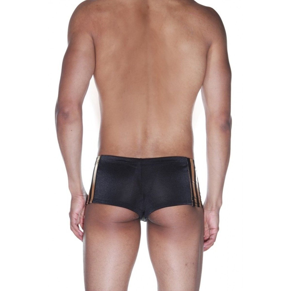 Мужские трусы-хипсы с золотистыми полосками.