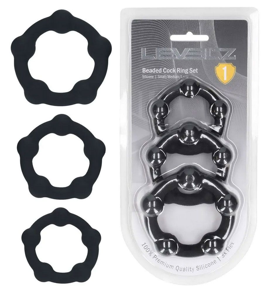 Набор из 3 эрекционных колец Beaded Silicone Cockring Set. Внутренний диаметр — 3, 3,5 и 4 см.