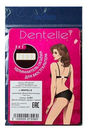 Набор из 3 разноцветных удлинителей для бюстгальтера шириной в 1 крючок: белого, черного и телесного цвета.