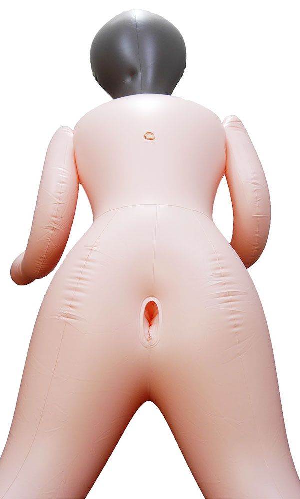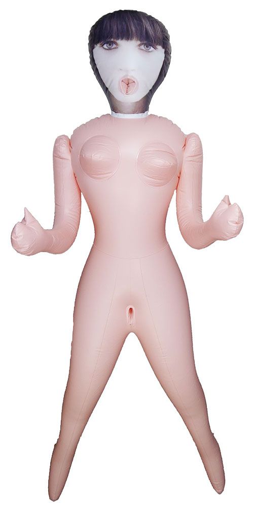 Красивая надувная кукла любви с очаровательным напечатанным лицом и стоячим положением. Она натурального размера, имеет грудь и 3 заманчивые любовные дырочки.