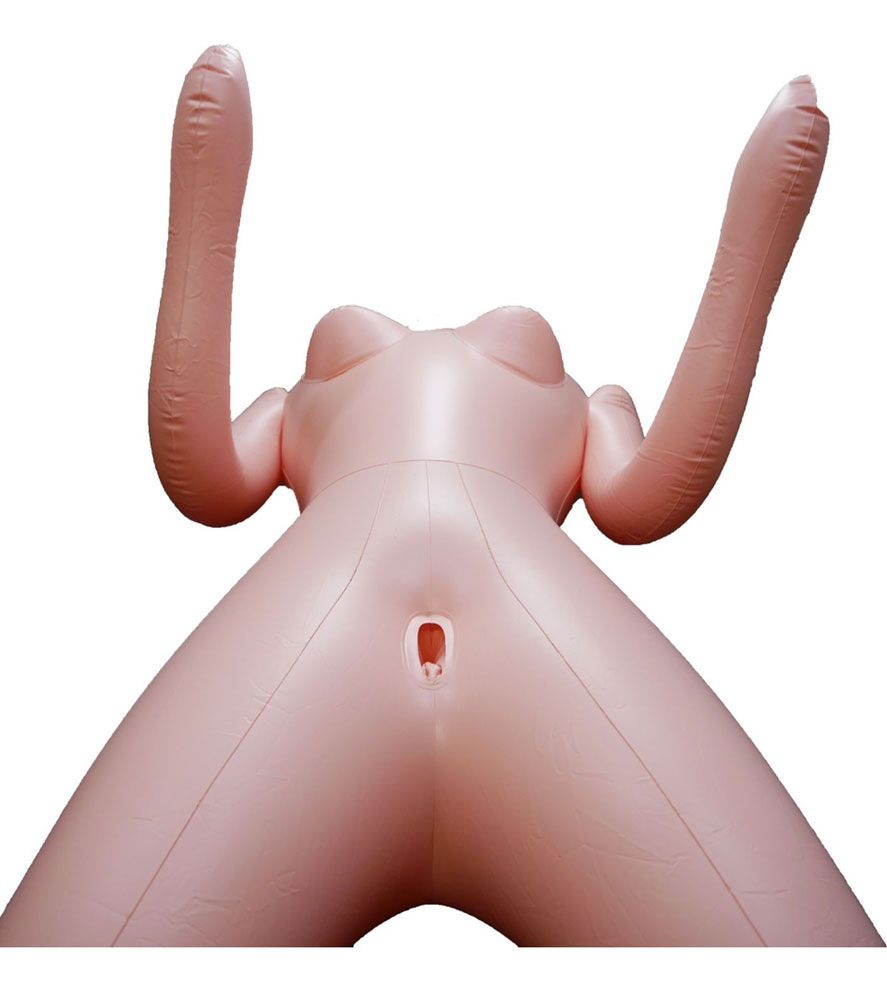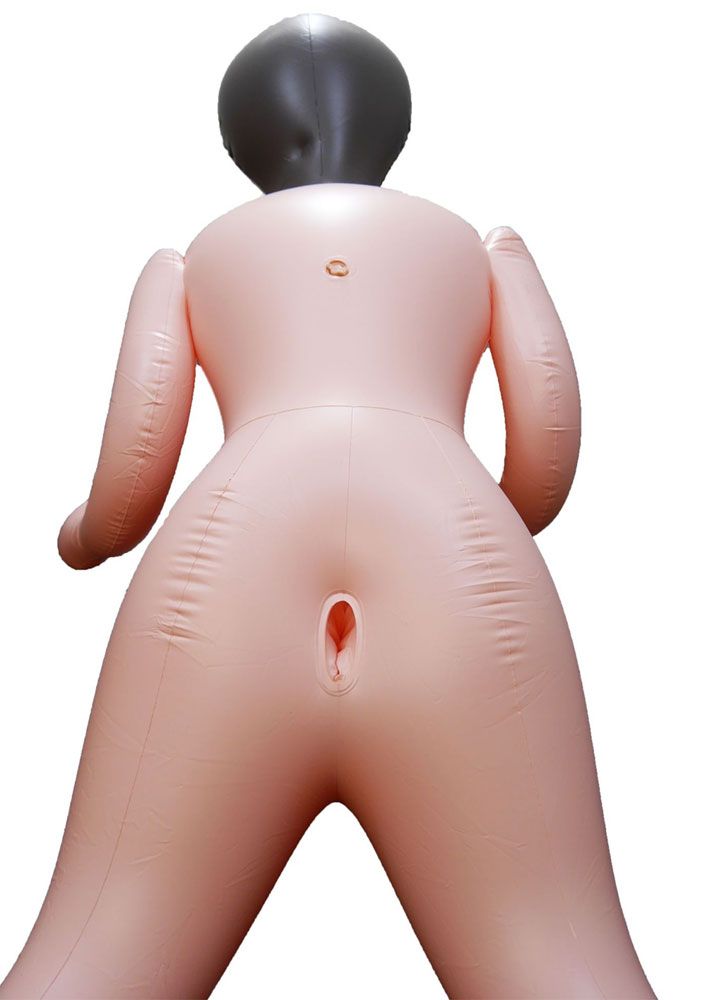 Красивая надувная кукла любви с очаровательным напечатанным лицом и стоячим положением. Она натурального размера, имеет грудь и 3 заманчивые любовные дырочки.