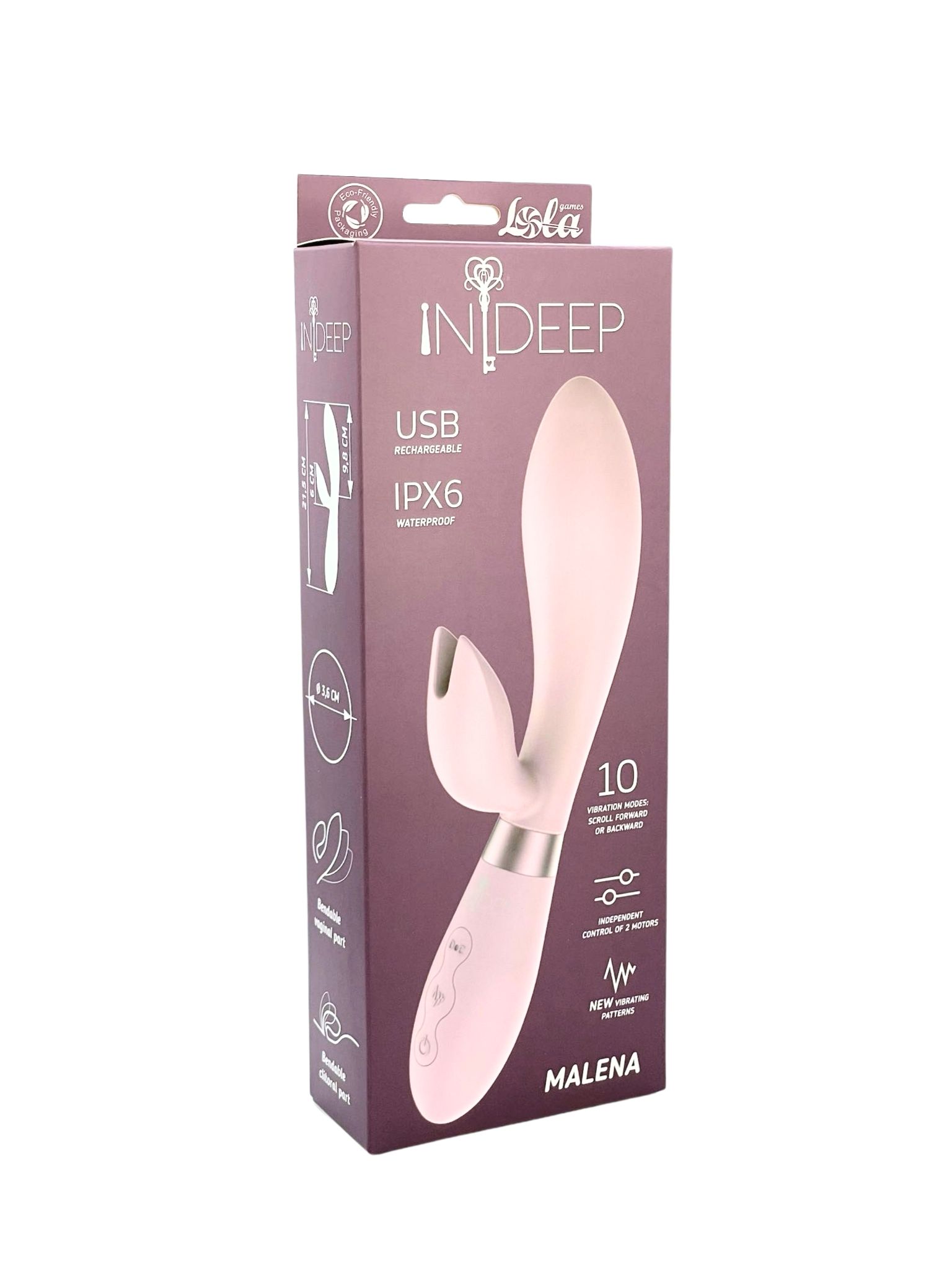 Вибратор Indeep Pro Malena оснащен двумя моторами, которые могут работать как вместе, так и отдельно друг от друга. В каждом из них по 10 уникальных режимов вибрации, продуманных специально для развития вагинального оргазма. Функция отматывания режимов назад позволит легко вернуться назад при необходимости. Гибкость вагинальной и клиторальной частей добавит комфорта в использовании, ведь вибратор будет подстраиваться под изгибы вашего тела. Благодаря стандарту водонепроницаемости IPX6 можно использовать в душе. Заряжается от USB. Изготовлен из гипоаллергенного силикона. Форма клиторального отростка достаточно крупная для того, чтобы подойти каждой женщине вне зависимости от индивидуального анатомического строения. Техника развития вагинального оргазма: стимулируйте клитор снаружи и изнутри одновременно. При приближении оргазма, прекратите внешнюю стимуляцию и сконцентрируйтесь на внутренней. Прекращайте внешнюю стимуляцию клитора каждый раз чуть раньше. Рабочая длина — 9,5 см. Время зарядки — 1,5 часа. Время работы — 2 часа.