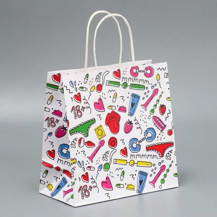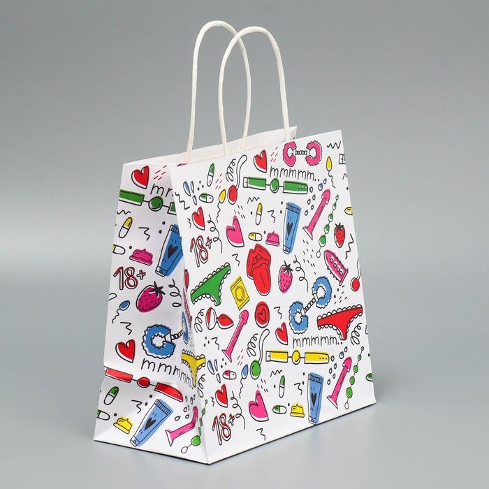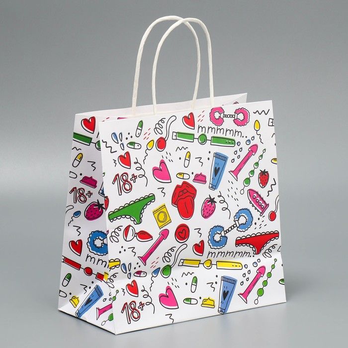Подарочный крафтовый пакет«18». Размеры — 22×22×11 см.