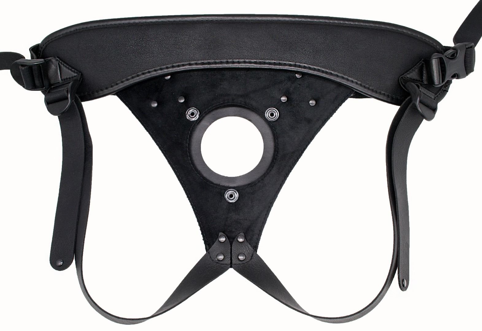 Пояс способен выдержать самый «солидный» размер насадки. Для этого проденьте насадку с присоской в отверстие. Присоска, соприкасаясь с телом, способна амортизировать нагрузки и даже присасываться к телу, дополнительно фиксируя изделие. В зависимости от размера снимите или оставьте съемное кольцо. И отрегулируйте «хомутик» с помощью кнопок для изменения диаметра по насадке-реалистику. Такой пояс можно использовать в очень широком диапазоне размеров. Материал изделия — полиуретановая стрейч-кожа нового поколения. Он превосходит по своим потребительским свойствам натуральную кожу, традиционно используемую для данных изделий. Этот композитный искусственный материал не впитывает органические загрязнения, не теряет краску и не «мажется». Прекрасно стерилизуется спиртосодержащими растворами, хлоргексидином. Благодаря эластичности материал не потеряет своих свойств даже при страстных и дерзких решениях. Мгновенно и легко расстегивайте многослойные ремешки с помощью фастекса «быстросъем». Он сохраняет размеры и регулировку до следующего применения. Изделие изготовлено с использованием латунных хольнитенов. Они не вызовут аллергических реакций на Вашей коже. Заклепки обеспечат длительную эксплуатацию и прочность даже при использовании в качестве атрибутики БДСМ. Бандаж дополняет конструкцию пояса и прекрасно «сидит» на бедрах. Влагопоглощающий бархат на внутренней поверхности, придает необходимый комфорт при контакте с кожей тела. Эта версия пояса — без насадок. Выберите себе оптимальный комплект: пояс универсален и может использоваться с любыми фаллоимитаторами.