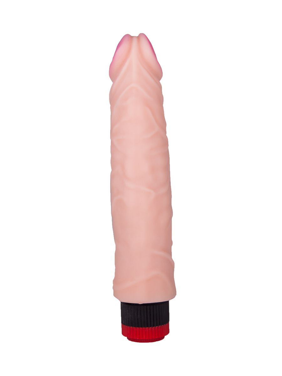 Вибромассажер выполнен из материала неоскин, качество которого гарантированно соответствует международным стандартам. Изделие имитирует мужской пенис с ярко выраженной головкой и рельефной поверхностью по всей длине ствола. Интим-аксессуар в таком исполнении – это отличное сочетание выгодной цены и высокого качества. Вибрацию можно легко регулировать с помощью плавных движений колесика, расположенного в основании игрушки. Рабочая длина — 20,5 см.