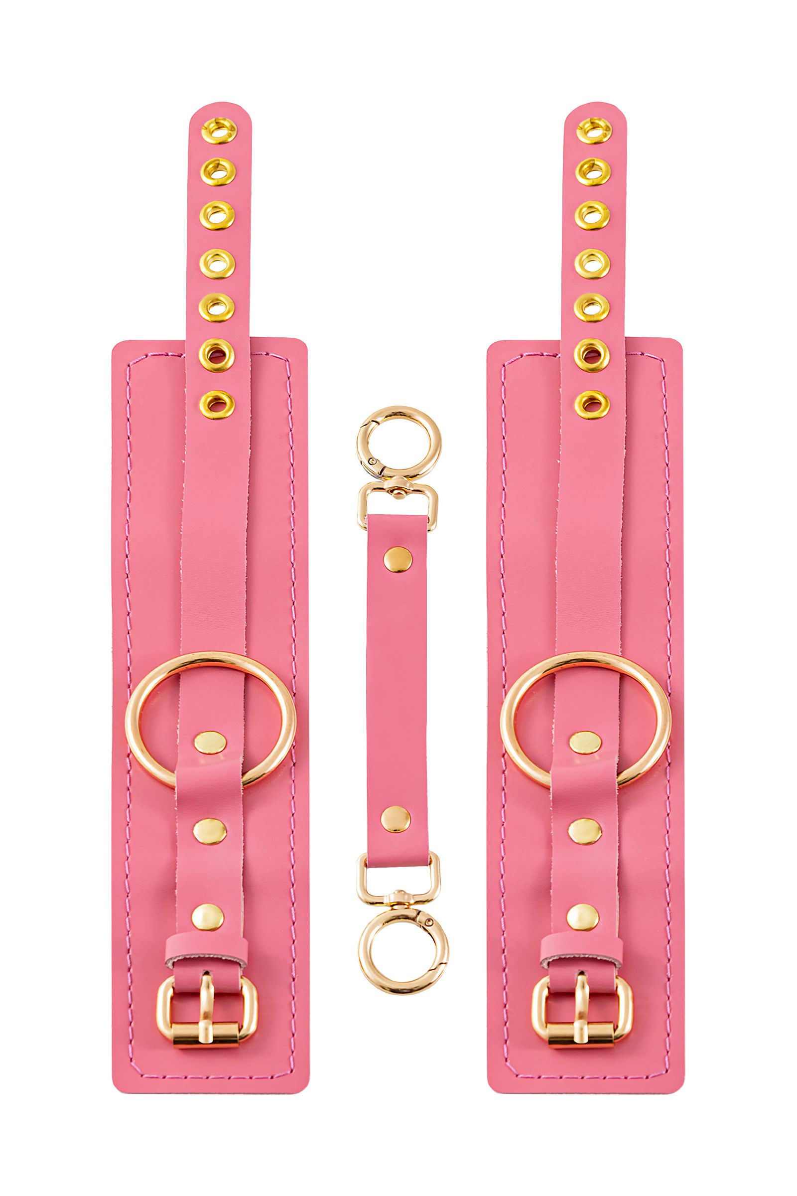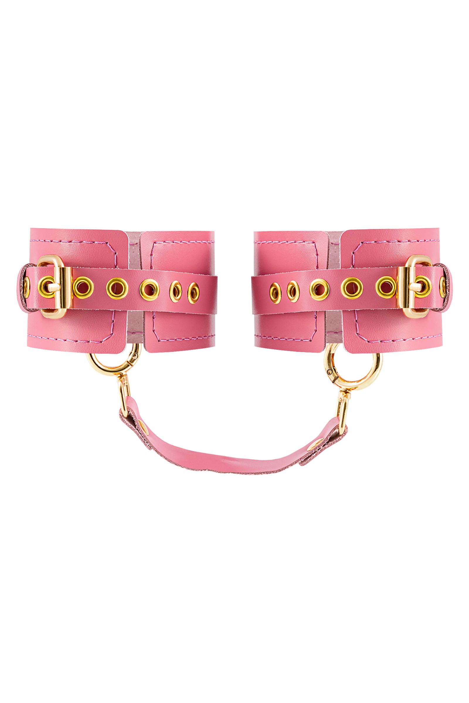 Готовы играть по-взрослому? Не бойтесь своих желаний! Основатели бренда уверены: лучший способ избавиться от искушения — поддаться ему! Добавьте пикантную деталь в ролевую игру и воплотите самую смелую сексуальную фантазию в реальность! Эти однослойные кожаные розовые оковы со строчкой в тон кожи могут стать стильным аксессуаром, а могут послужить вашим целям по своему прямому назначению. Частичное обездвиживание и невозможность двигать руками или ногами дают вам полную власть над партнером – взрослые игры для взрослых. Наличие двух колец и карабинов, соединенных между собой кожаным ремешком, позволяет использовать изделие как раздельно – аксессуар-манжеты, так и как оковы для фиксации. К широким металлическим кольцам также можно присоединить и другие аксессуары при помощи карабинов. Благодаря универсальному размеру оковы могут использоваться и мужчинами, и женщинами. Размер легко регулируется с помощью металлических пряжек, органично вписывающихся в общий стиль. Длина манжет – 25 см, ширина — 6,5 см. Длина сцепки – 17 см.