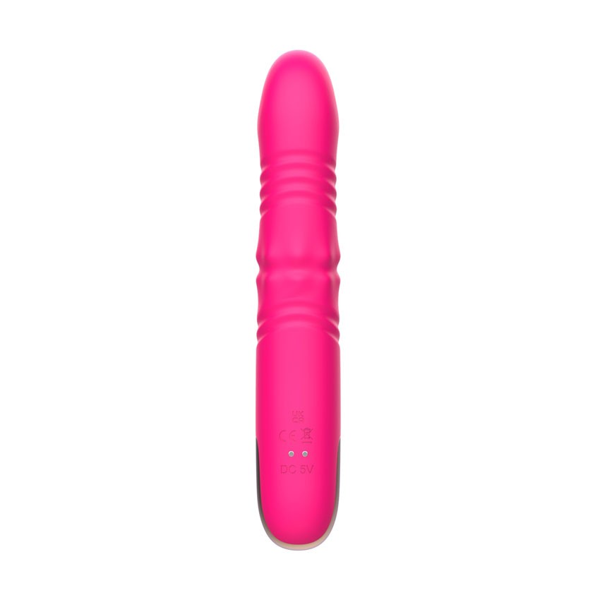 Розовый вибратор с возвратно-поступательными движениями и вращением бусин. 10 возвратно-поступательных движений, 10 режимов вибрации, вращение шариков Рабочая длина — 9,8 см.