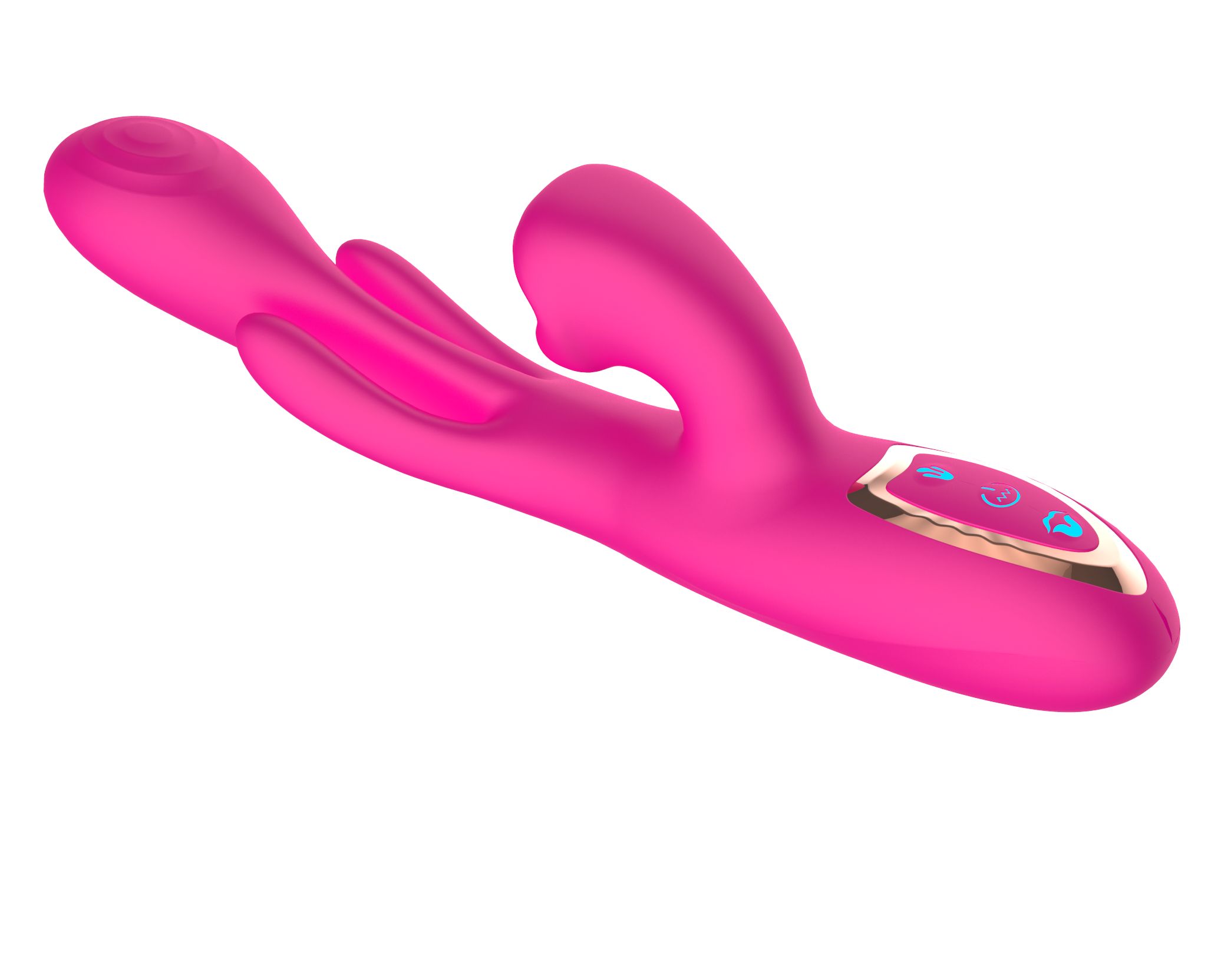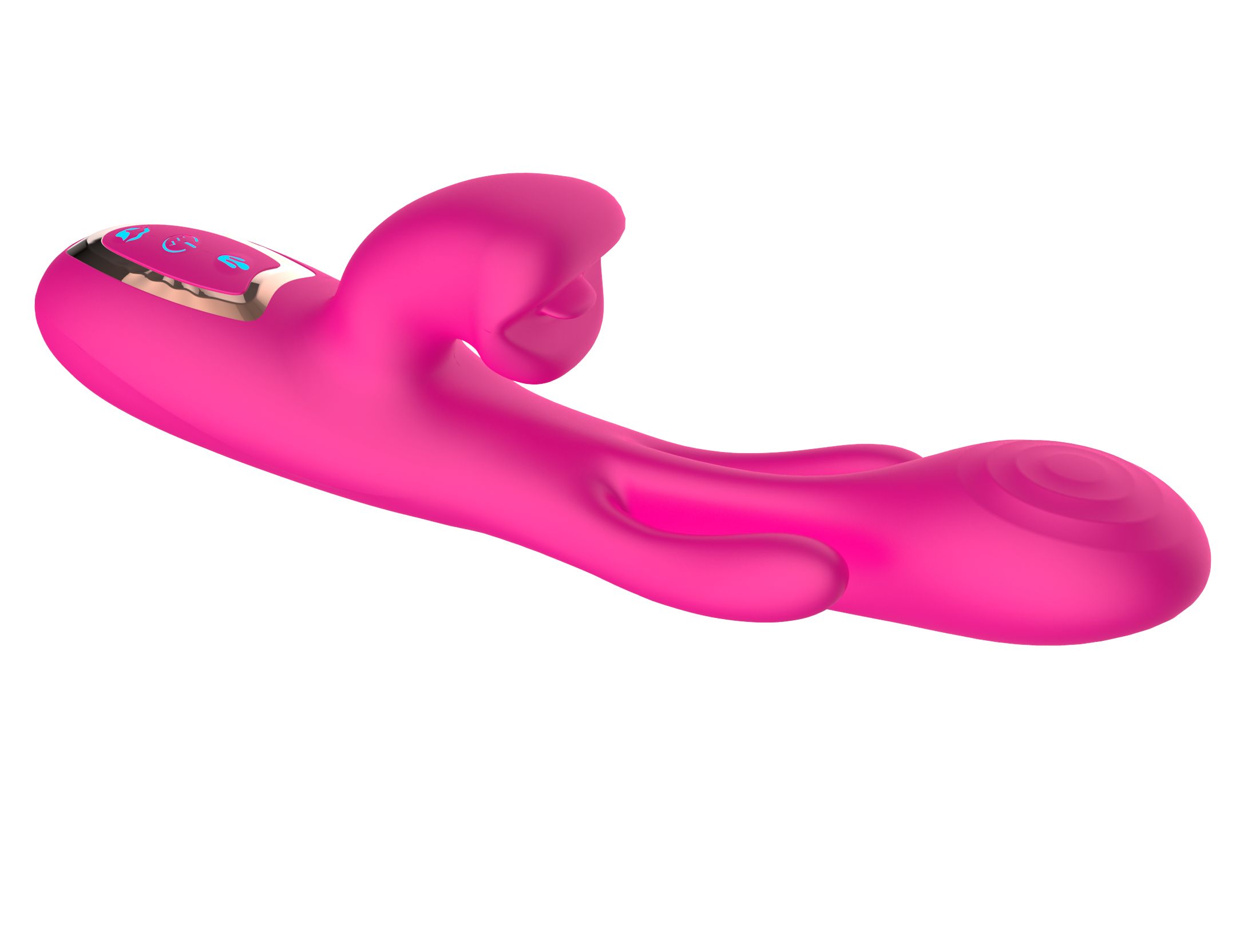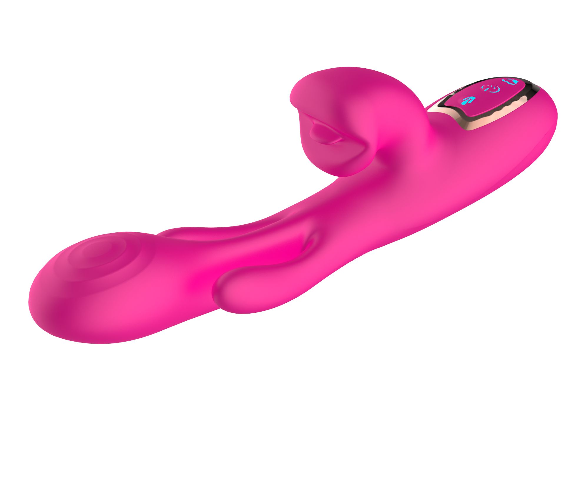 Розовый вибратор со стимуляцией клитора и фингерингом. 10 режимов вибрации.