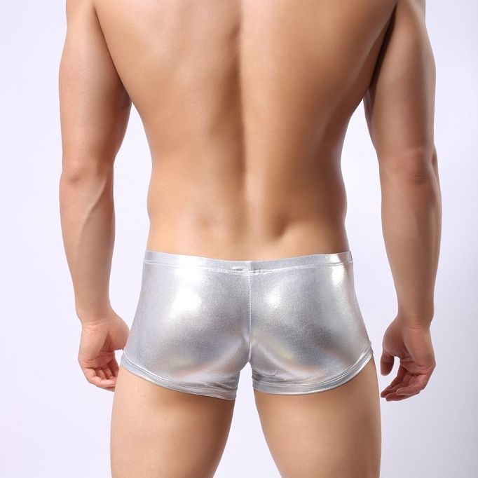 Серебристые мужские трусы-боксеры.