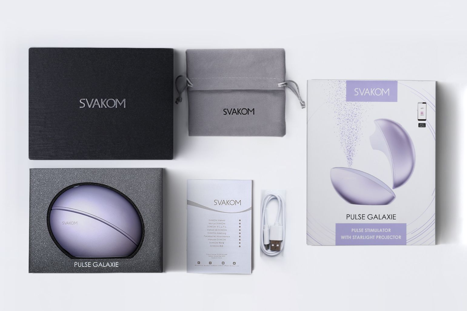 Вакуумный стимулятор Pulse Galaxie с проектором — никогда удовольствие не было таким безграничным. Встречайте волнующую и желанную новинку Svakom — Pulse Galaxie. Не из этого мира! Pulse Galaxy имеет оригинальный дизайн. Игрушка выглядит, как две половинки полумесяца. Одна часть — это сам вакуумный стимулятор, а вторая — аккуратная база для зарядки с разъемом Type C и проектором звездного неба! Включаешь проектор, и вокруг тебя сверкают звезды, романтично и многообещающе! 3 режима световой проекции на выбор. Pulse Galaxy выполнен из прочного анодированного пластика и высококачественного, приятного на ощупь силикона — мягкого и бархатистого. Даже просто держать в руках эту игрушку — уже наслаждение! В игрушке используется Pulse Technology: эксклюзивная технология, позволяющая подвижному мембранному барабану стимулировать эрогенные зоны с невероятной глубиной. Каждое прикосновение — как волна удовольствия, и ты словно улетаешь в космос от этих ощущений! Всего у Pulse Galaxy 5 режимов и 5 уровней интенсивности. Легким нажатием так легко подобрать ритм под настроение и желание. Можно ракетой унестись к вершинам наслаждения или, наоборот, медленно парить в невесомости удовольствия. Будучи действительно продвинутой игрушкой, Pulse Galaxy управляется через мобильное приложение от Svakom. Всегда можно выйти за рамки и синхронизировать стимулятор с любимыми треками: получать наслаждения под знакомые ритмы. Pulse Galaxy от Svakom — клиторальный стимулятор, проектор… да просто космос, а не игрушка! Испытайте неземное наслаждение с Pulse Galaxie!