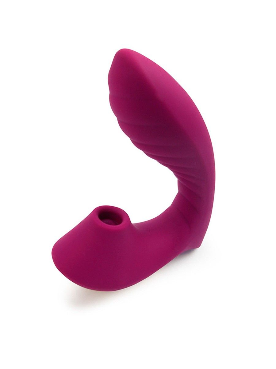 Оригинальный вибромассажёр с 10 режимами вибрации и вакуума. Подойдёт для стимуляции влагалища и клитора. Эргономичная форма способствует безболезненному введению интимного аксессуара и дарит незабываемое удовольствие. Изогнутый ствол позволяет воздействовать на точку G, а его ребристая поверхность усиливает возбуждение. Секс-игрушка изготовлена из приятного на ощупь бархатистого материала. Проста в использовании и уходе. Включение/выключение вибрации и вакуума: нажать и несколько секунд удерживать кнопку вкл./выкл. Должен загореться/погаснуть световой индикатор. Вибрация и вакуум включаются и работают только одновременно. Переключение режимов вибрации и вакуума: краткое нажатие кнопок с изображением +, или -. Рабочая длина — 10 см, диаметр — 3,5 см.