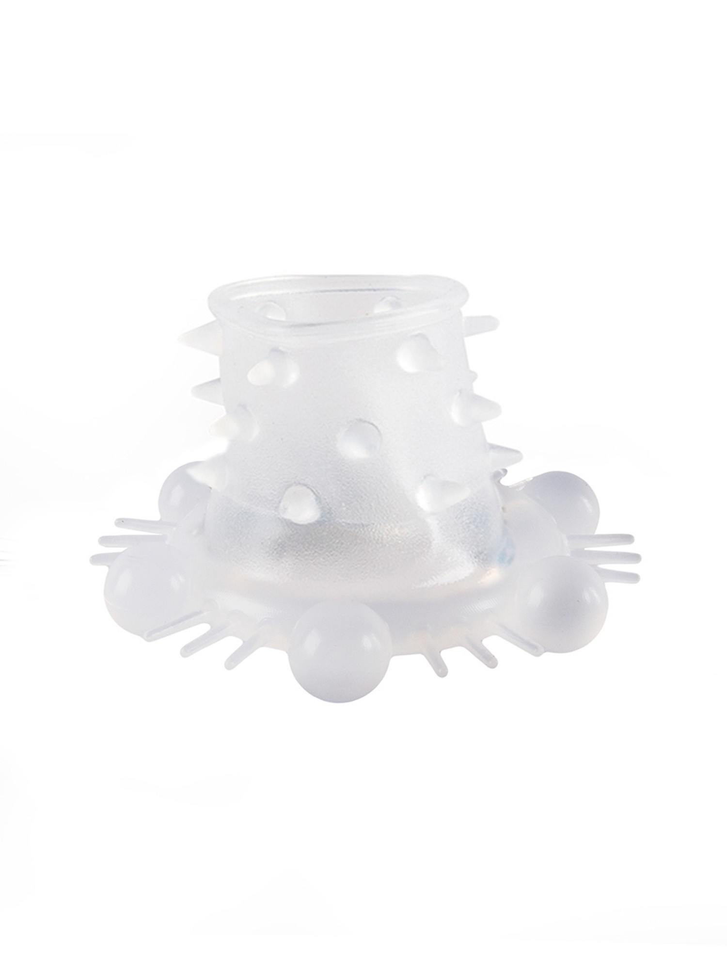Насадка для пениса усиливает эрекцию, повышает чувствительность и продлевает интимную близость. Шипики и шарики на поверхности изделия дарят партнёрше потрясающие эротические ощущения. Интимный аксессуар изготовлен из эластичного материала. Хорошо тянется. Подходит для половых членов разных размеров. Внутренний диаметр — 1,5 см.
